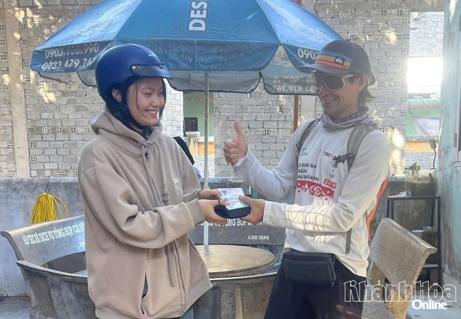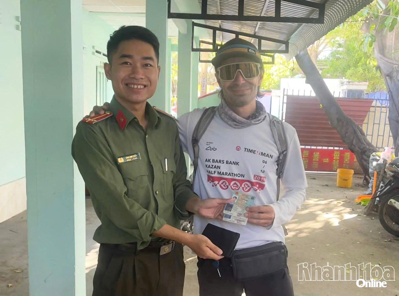 Dưới sự trợ giúp tích cực của Công an xã Cà Ná, du khách Alexie đã trực tiếp trao lại ví da cùng giấy tờ tùy thân cho người thân ông Sỹ.
