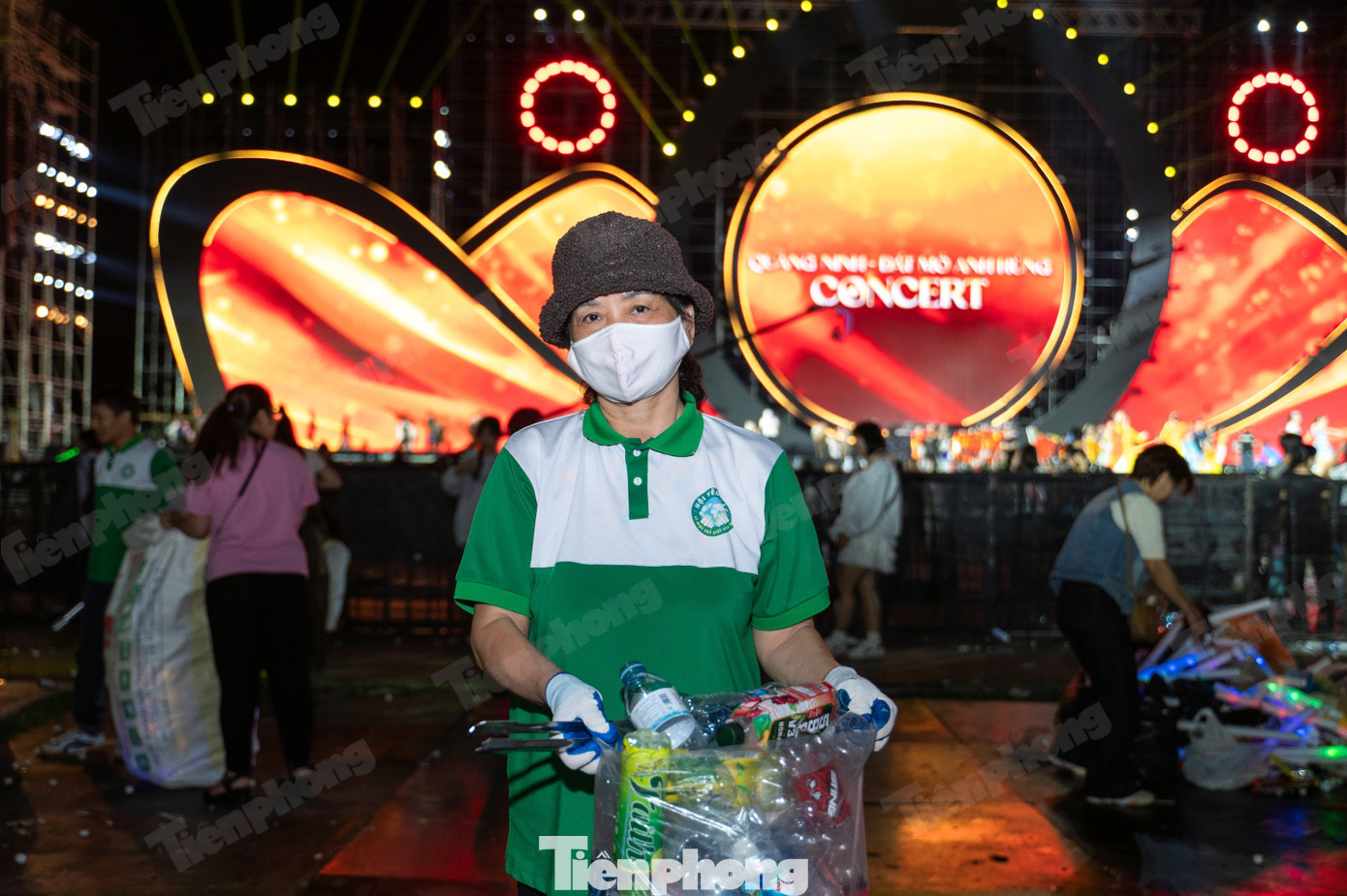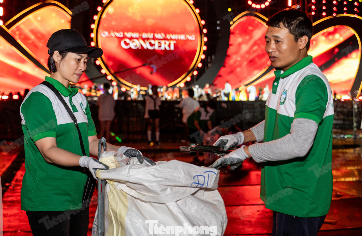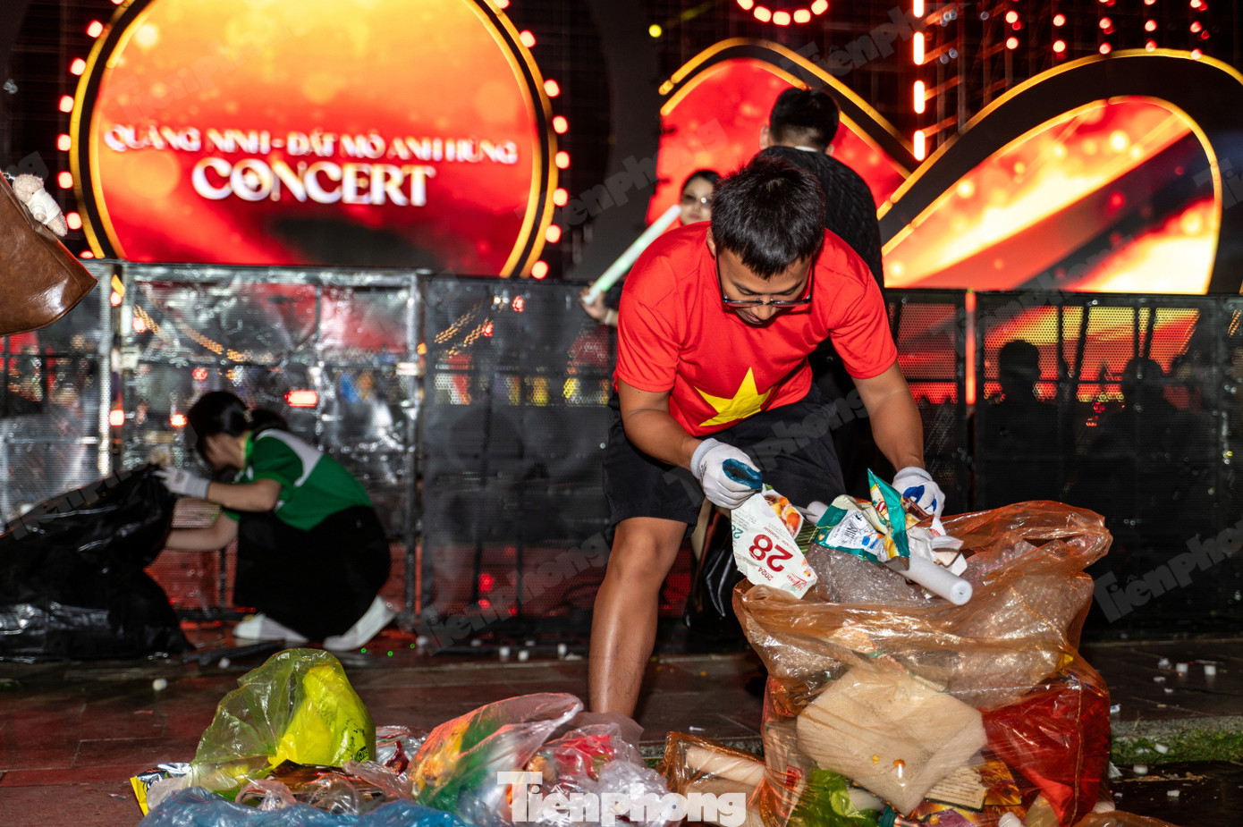 Sau khi chương trình kết thúc người dân Quảng Ninh cùng khách du lịch bảo nhau ở lại thu gom rác trên các khán đài và mặt sân.