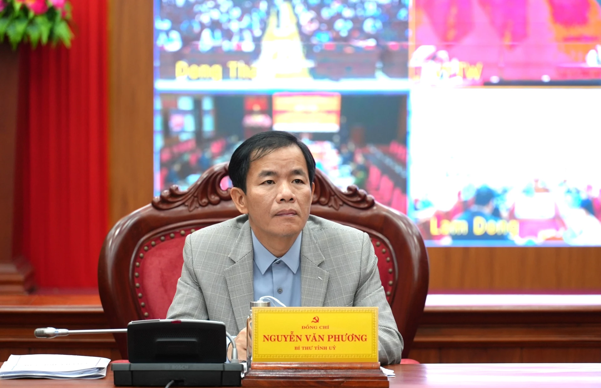 Đồng chí Nguyễn Văn Phương, Bí thư Tỉnh ủy dự hội nghị tại điểm cầu Tỉnh ủy Quảng Trị - Ảnh: Trung Đức