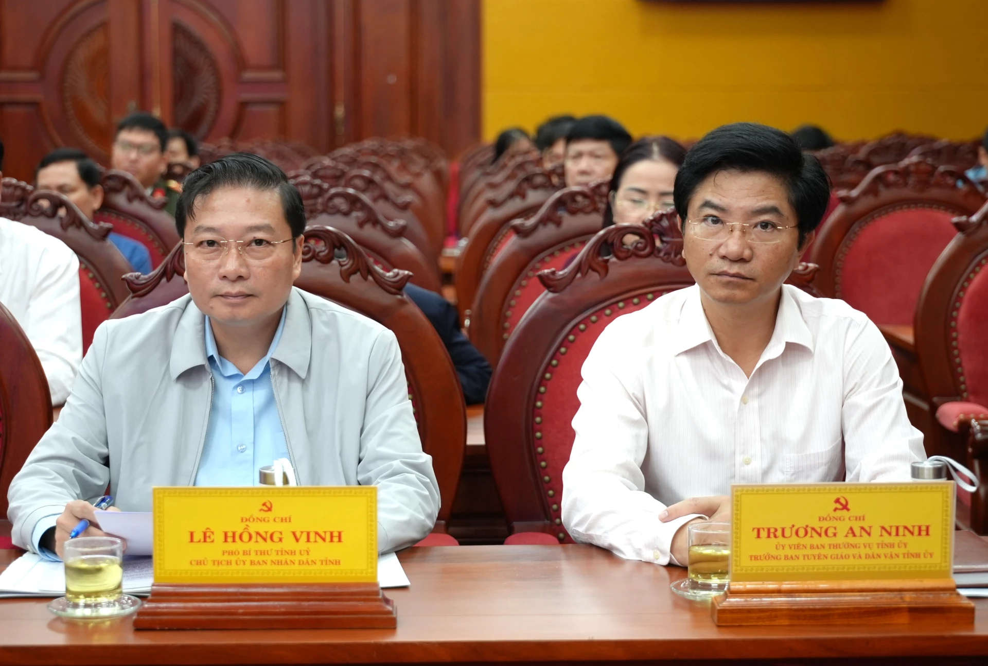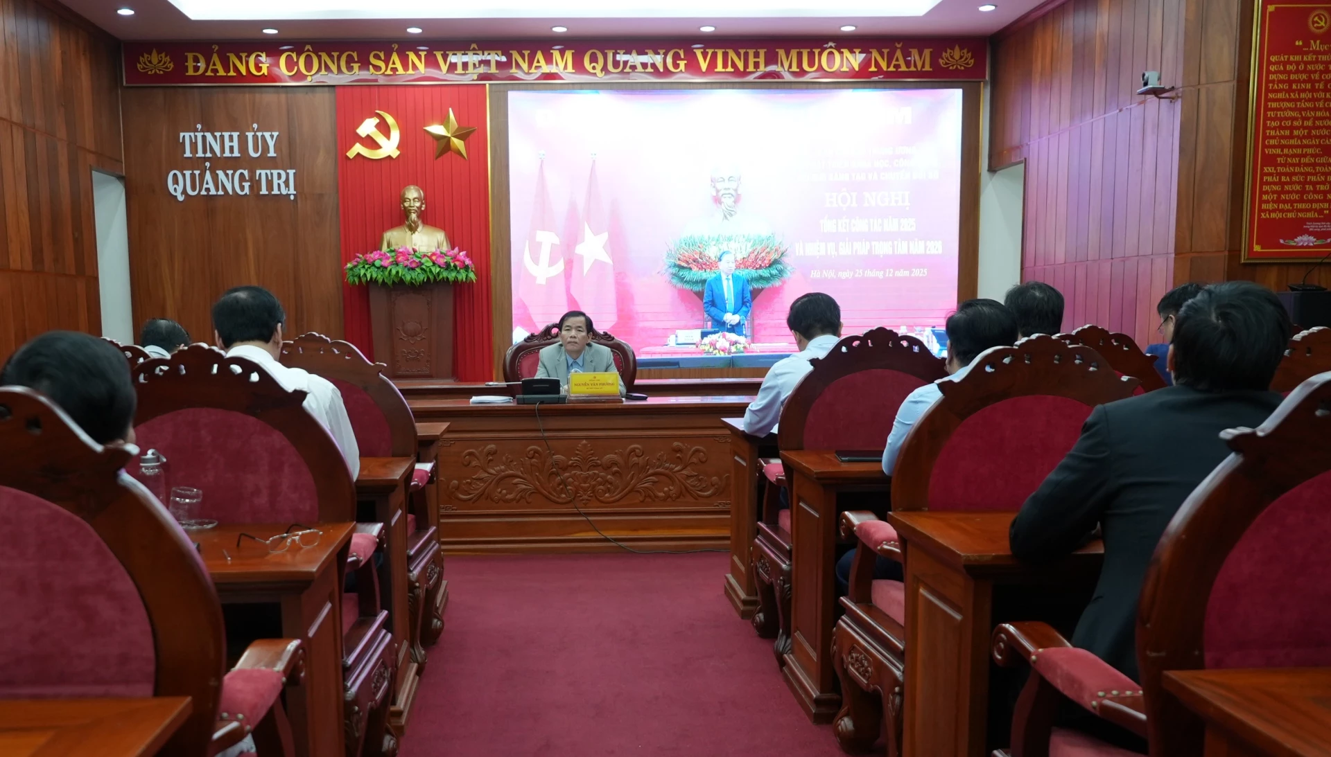 Dự hội nghị tại điểm cầu tỉnh Quảng Trị có các đồng chí: Nguyễn Văn Phương, Bí thư Tỉnh ủy, Trưởng Ban Chỉ đạo về phát triển KH-CN, ĐMST&CĐS tỉnh; Trần Vũ Khiêm, Phó Bí thư Thường trực Tỉnh ủy, Phó Trưởng Ban Thường trực Ban Chỉ đạo; Lê Hồng Vinh, Phó Bí thư Tỉnh ủy, Chủ tịch UBND tỉnh, Phó Trưởng Ban Chỉ đạo; các Ủy viên Ban Thường vụ Tỉnh ủy, Ủy viên Ban Chấp hành Đảng bộ tỉnh, các Phó Trưởng Ban Chỉ đạo và thành viên Ban Chỉ đạo tỉnh.