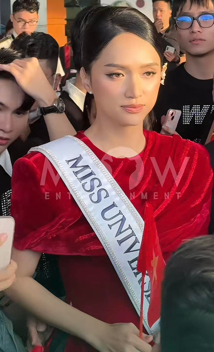 Hương Giang tại sân bay sáng nay, trước khi chính thức lên đường qua Thái Lan tham gia Miss Universe. (Ảnh từ TikTok Meow Entertainment)