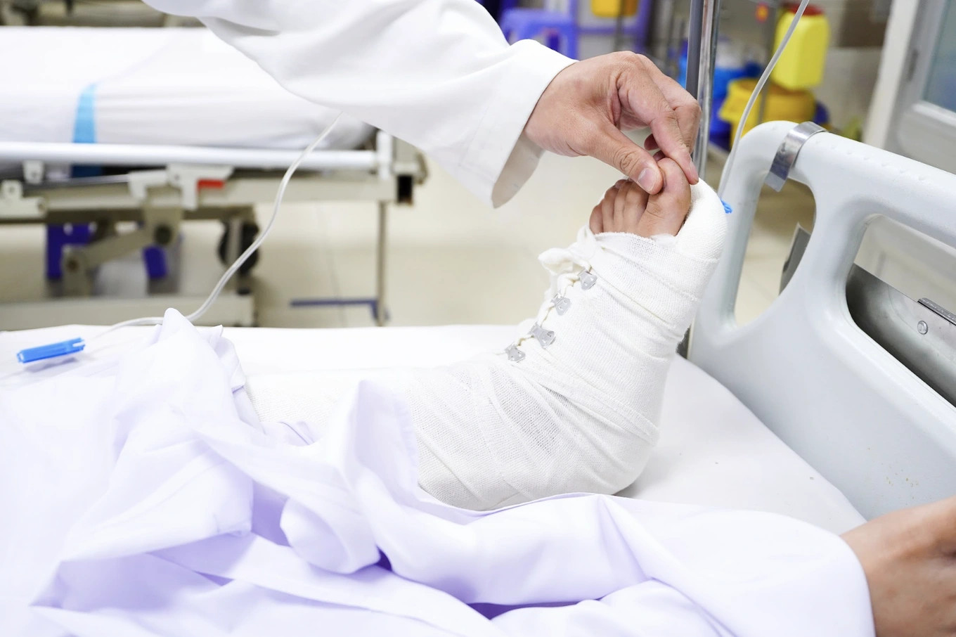 Một nạn nhân vụ cháy bị thương nặng ở chân sau khi nhảy lầu. Ảnh: BVCC