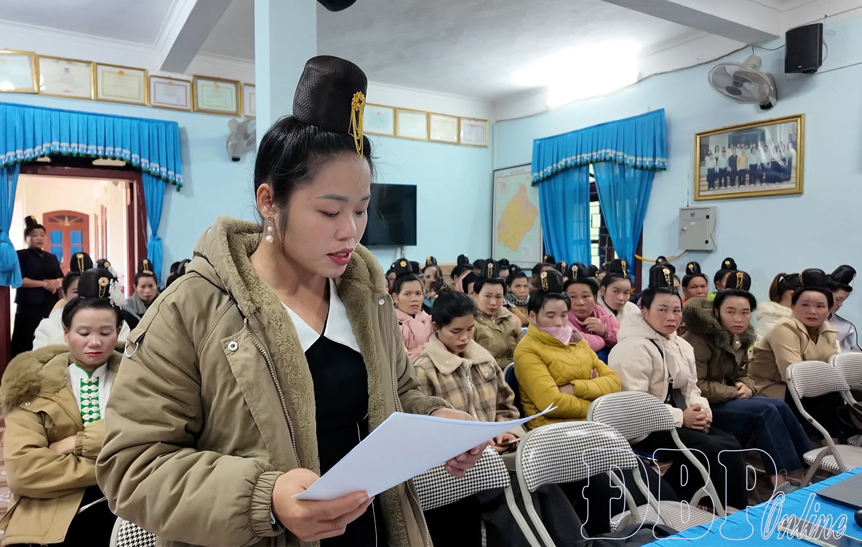 Phụ nữ xã Búng Lao tham gia ý kiến tại hội nghị đối thoại thúc đẩy bình đẳng giới do Hội LHPN xã phối hợp với cơ quan chức năng tổ chức.