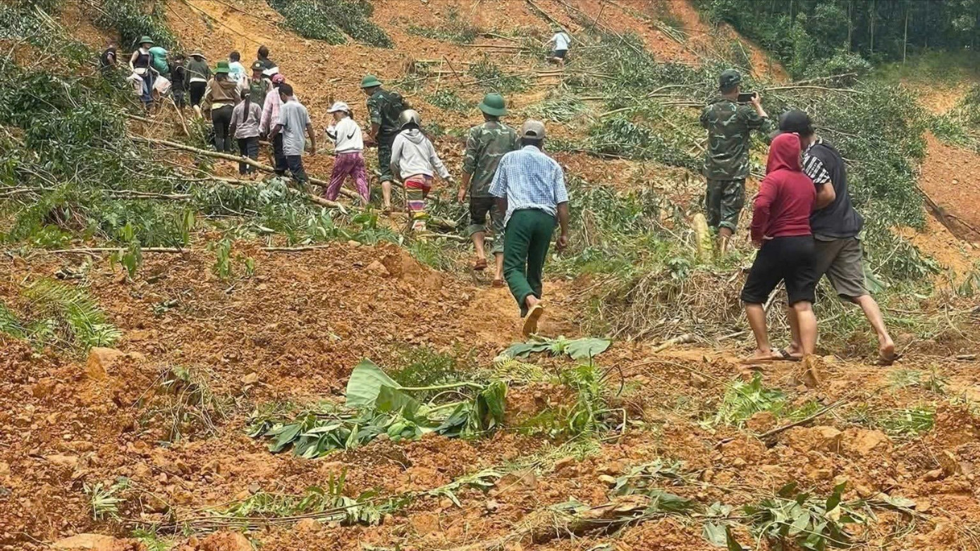 Đường vào khu vực sạt lở còn ngổn ngang, đi lại hết sức khó khăn.