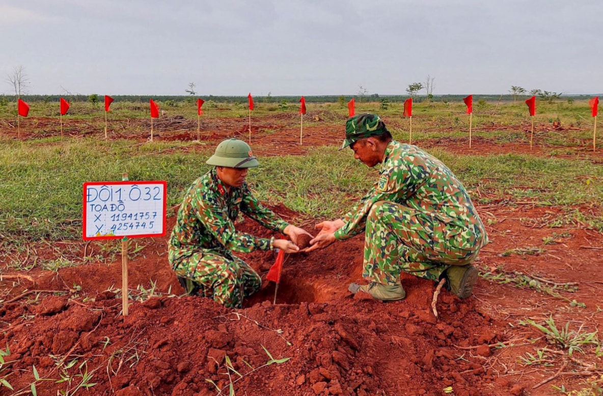 Các đơn vị cũng tiến hành rà phá bom mìn đặt những dấu mốc đầu tiên cho đại công trường. Ảnh: Nghiêm Ý