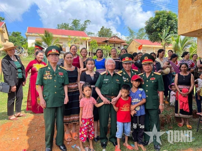 Trung tướng Khuất Duy Tiến, nguyên Tư lệnh Quân đoàn 3 và các cựu chiến binh trong ngày khánh thành công trình nhà bia di tích lịch sử điểm cao 1015 (CHARLIE) và 1049 (DELTA), tháng 3-2018.