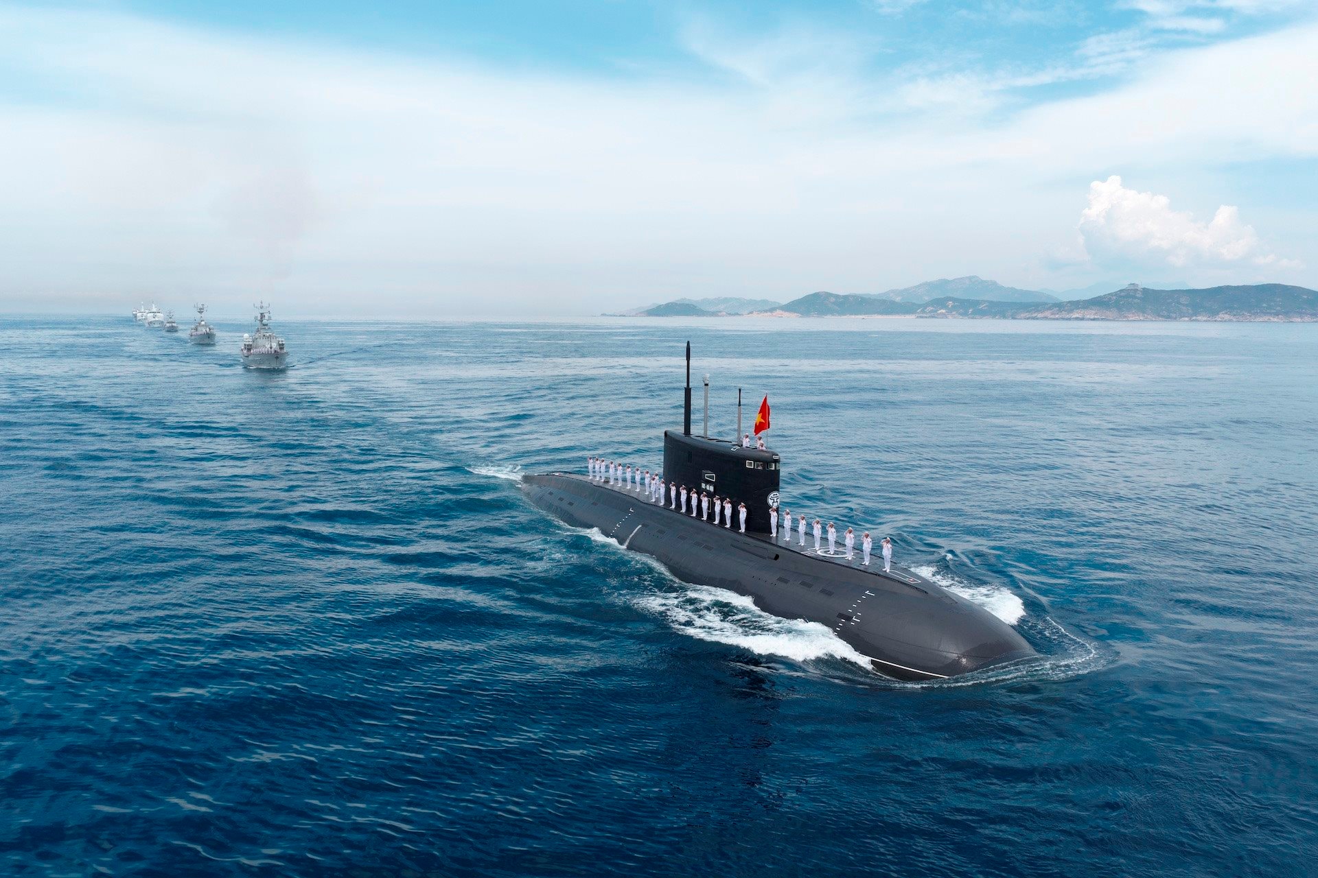 Tàu ngầm của Lữ đoàn 189 trong đội hình diễu binh trên biển A80.