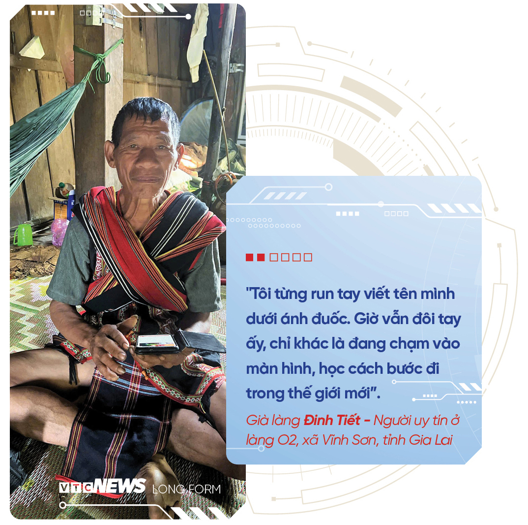 Trong góc nhà, già làng Đinh Tiết, 62 tuổi, lặng lẽ ngồi. Ký ức về những lớp học dưới ánh đuốc 80 năm trước vẫn vẹn nguyên. Giờ đây, nhìn cảnh tượng trước mắt, già run run cầm chiếc điện thoại, giọng trầm ấm vang lên như một cây cầu nối liền hai thế kỷ: “Ngày xưa, cũng trong nhà rông này, chúng tôi ngồi ê a học chữ. Nay, con cháu học cách chạm màn hình”.