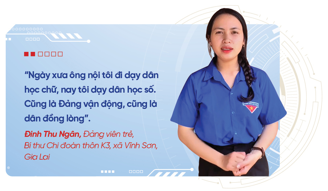 Đinh Ngân kể: “Xóa mù số khó khăn lắm. Nhưng người dân rất ham học. Có bà cụ 70 tuổi cứ hỏi đi hỏi lại: Tôi có cần học quét mã không?’ Tôi nói: Có chứ, học quét mã là để giữ tiền của mình an toàn hơn”.