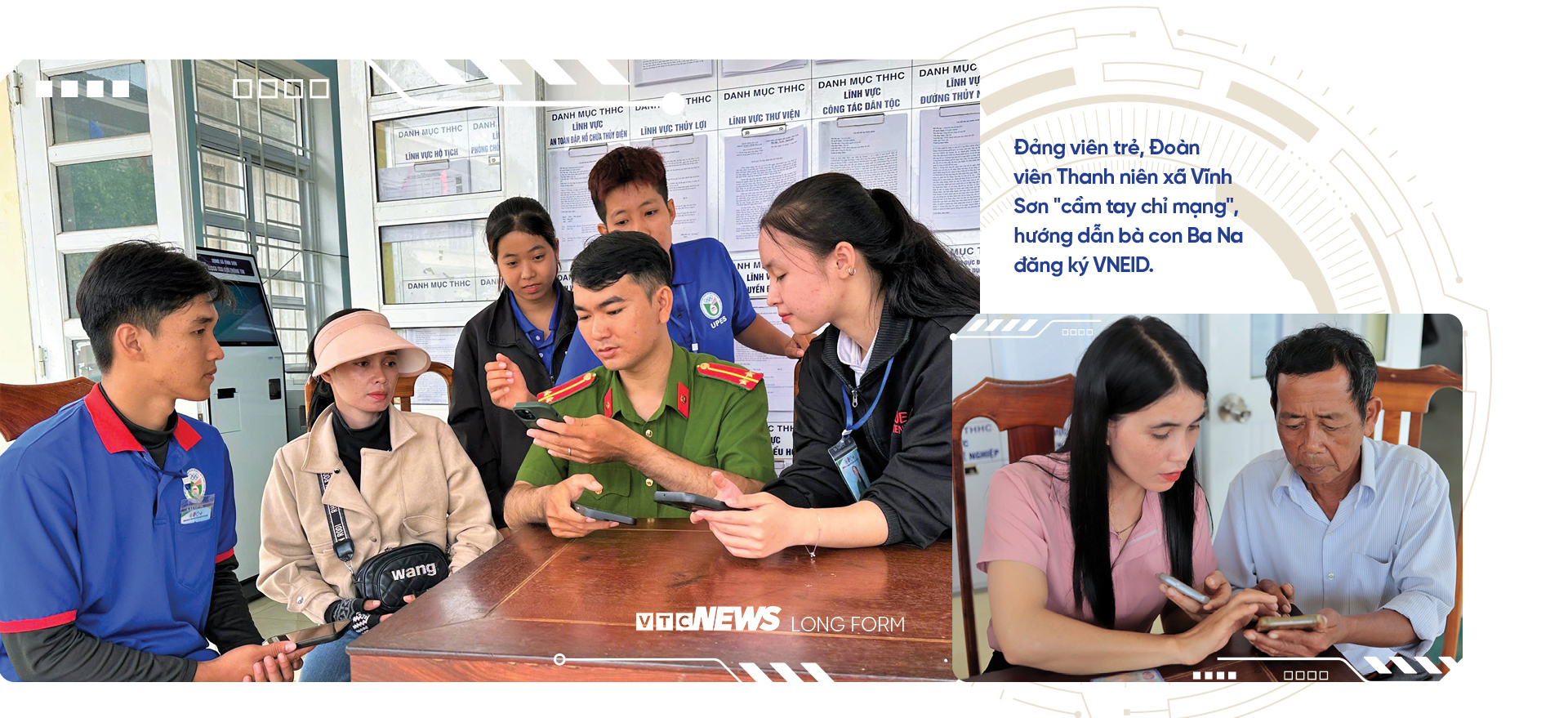 Điển hình là Đinh Ngân Ngân, đảng viên trẻ người Ba Na ở làng K3, xã Vĩnh Sơn. Mỗi tối, khi màn đêm buông xuống, chị lại xách chiếc máy chiếu nhỏ ra nhà rông. Trên tấm phông trắng, dòng chữ “Lớp học Bình dân số” hiện lên, kéo theo hơn ba chục bà con, người ôm cháu, người cầm điện thoại cũ, ngồi quây quanh. Chị vui vẻ hướng dẫn: “Bữa nay, mình học cách mở VNeID và đăng ký dịch vụ công. Bữa sau, mình học cách chụp ảnh gửi Zalo cho cán bộ xã”.