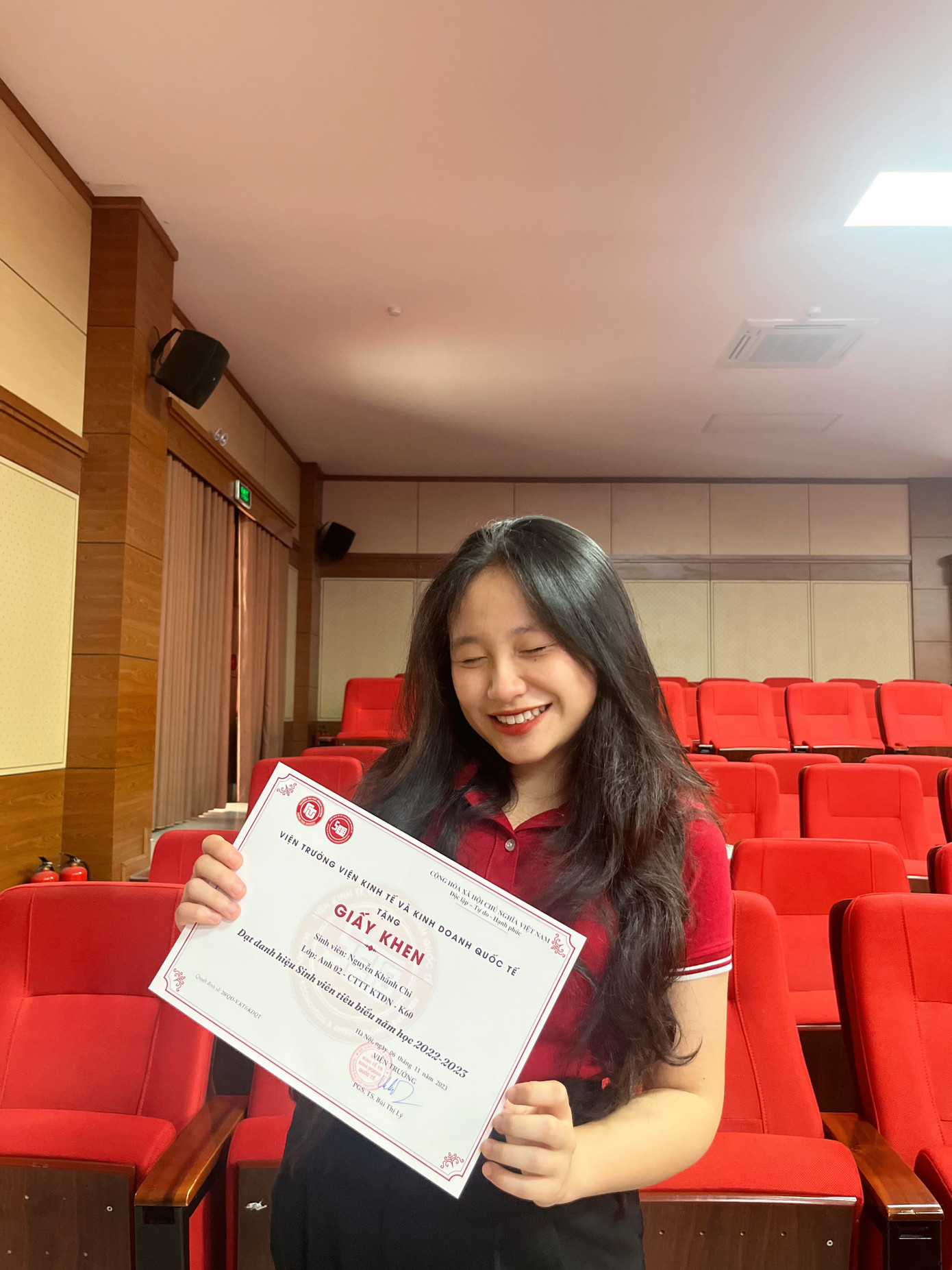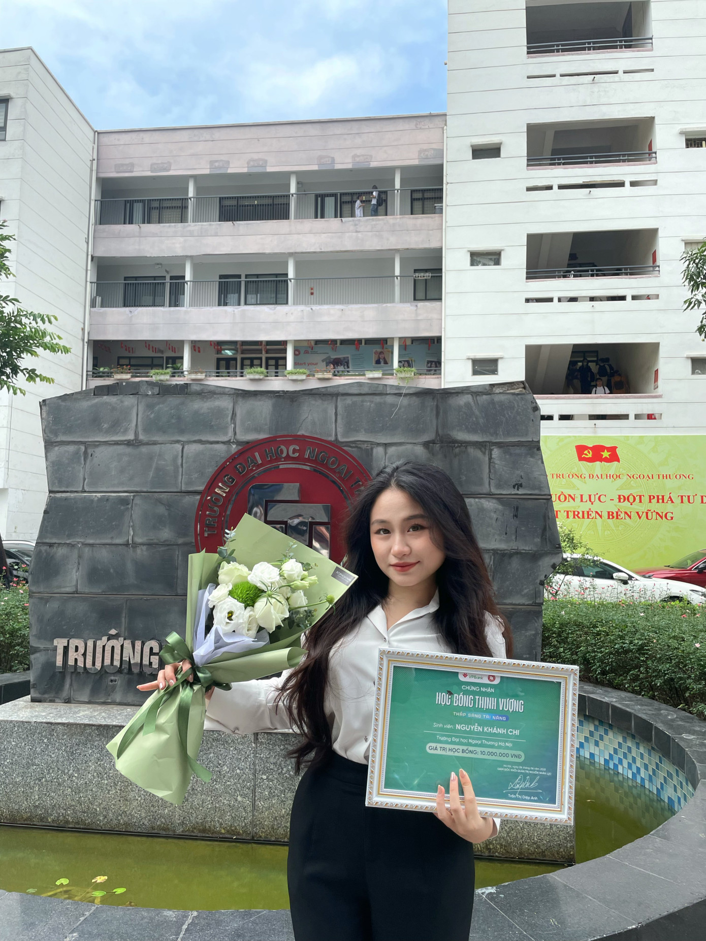 Khánh Chi từng xuất sắc giành Học bổng loại A, Học bổng VPBank Prosperity và nhiều năm liền được vinh danh là sinh viên tiêu biểu. Ngoài ra, cô cũng là Quán quân các cuộc thi lớn như Business Plan 2023, Med-technology Challenge, UpYouth Hackathon 2023, English Champion 2024. Song song với thành tích học tập, cô còn khẳng định dấu ấn ở nhiều sân chơi nghệ thuật như Cuộc thi Tuyên truyền ca khúc Cách mạng 2024, Giai điệu tuổi trẻ 2024…