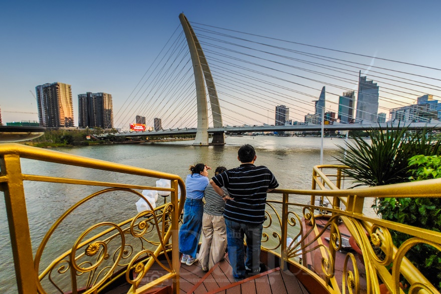Hành trình băng qua dưới dạ cầu dây văng Ba Son và Thủ Thiêm kết nối đôi bờ nhộn nhịp tạo nên một trải nghiệm thị giác thật sự choáng ngợp.