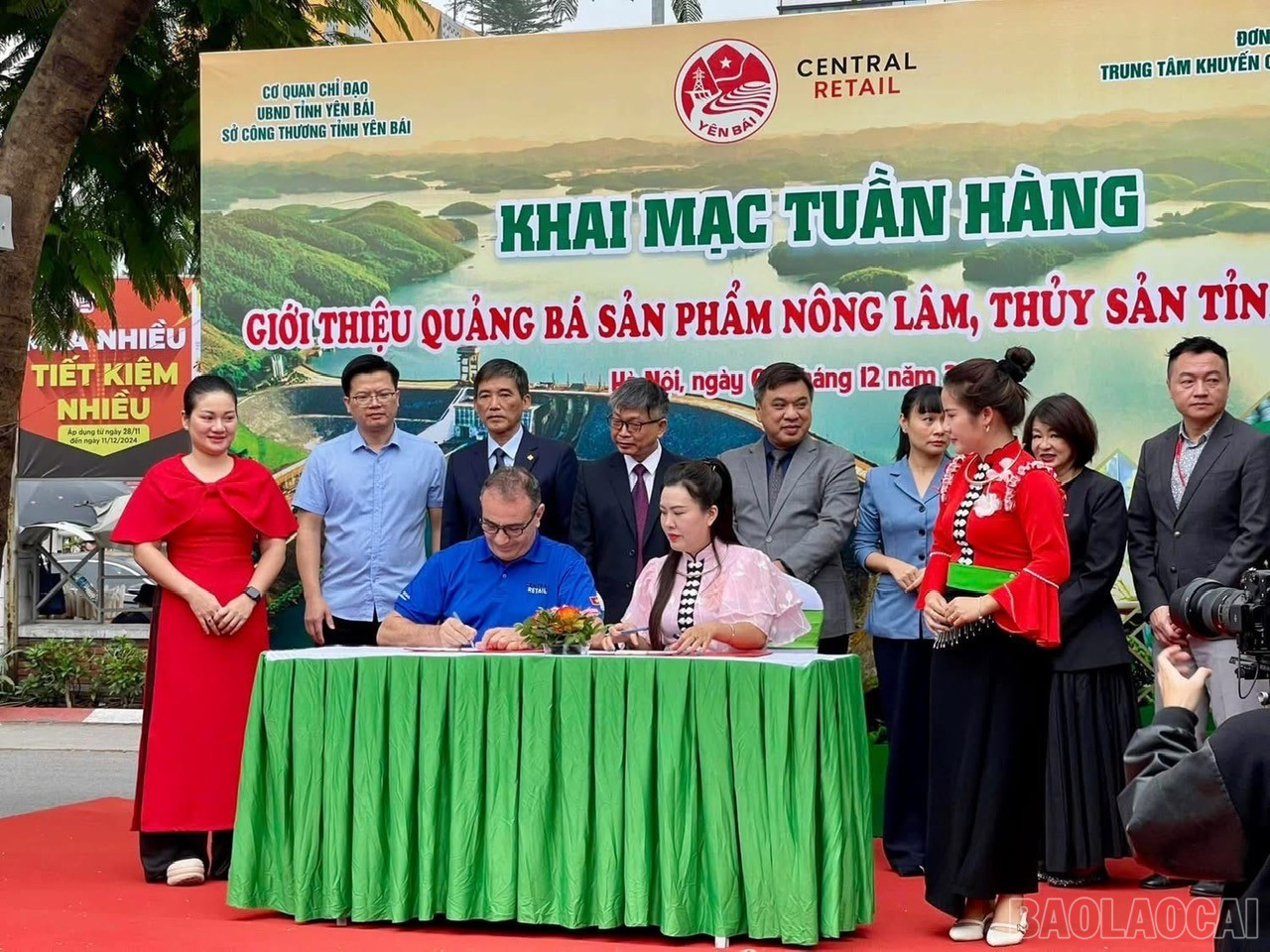 Đặc biệt, với việc khai trương siêu thị Go! thứ 2 tại phường Yên Bái, nhiều sản phẩm nông sản của tỉnh cũng đã xuất hiện trên kênh phân phối lớn này. Tại buổi làm việc với Tập đoàn Central Retail vào hồi tháng 8/2025, Tập đoàn đã ký hợp đồng tiêu thụ sản phẩm bưởi Đại Minh với Hợp tác xã đặc sản bưởi Đại Minh; cam kết sẽ xuất khẩu ra thị trường nước ngoài 2 sản phẩm: Tương ớt Mường Khương (Hợp tác xã Hoa Lợi) và Măng tre Bát Độ (Công ty CP Yên Thành) trong thời gian tới.
