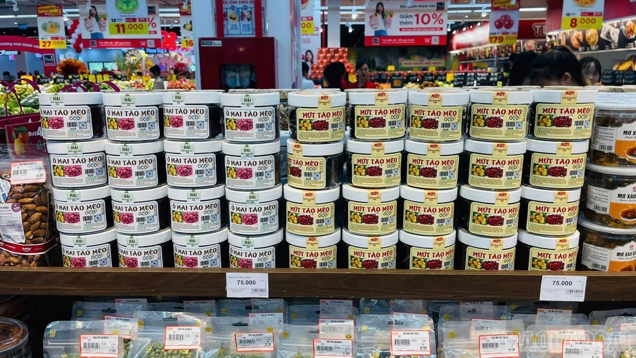 Sau 1 năm ký kết biên bản ghi nhớ, sản phẩm mứt, ô mai táo mèo của Hợp tác xã Chế biến, Kinh doanh tổng hợp Đoàn Lương đã được bày bán tại hệ thống siêu thị.