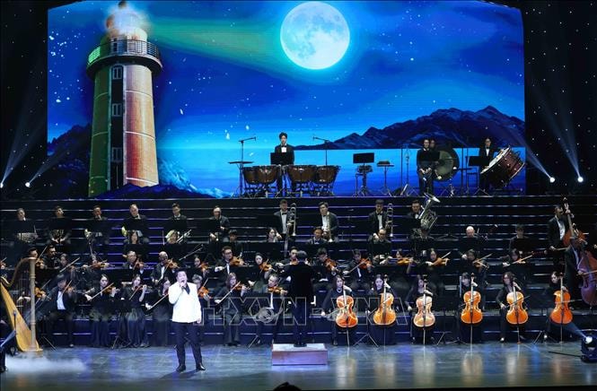 Không gian sân khấu được dàn dựng công phu, kết hợp giữa dàn nhạc giao hưởng và các tiết mục nghệ thuật hiện đại, tạo nên những cung bậc cảm xúc trang trọng và truyền cảm mạnh mẽ tới công chúng.