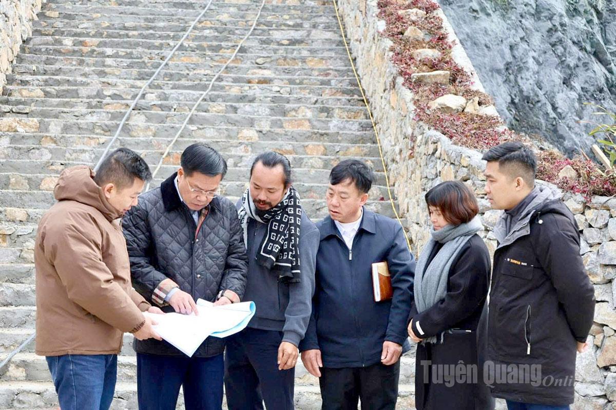Đồng chí Nguyễn Tiến Dũng, Bí thư Đảng ủy, Chủ tịch HĐND xã Đồng Văn kiểm tra tại các điểm nhấn du lịch của xã.