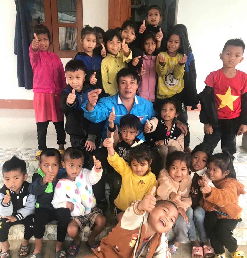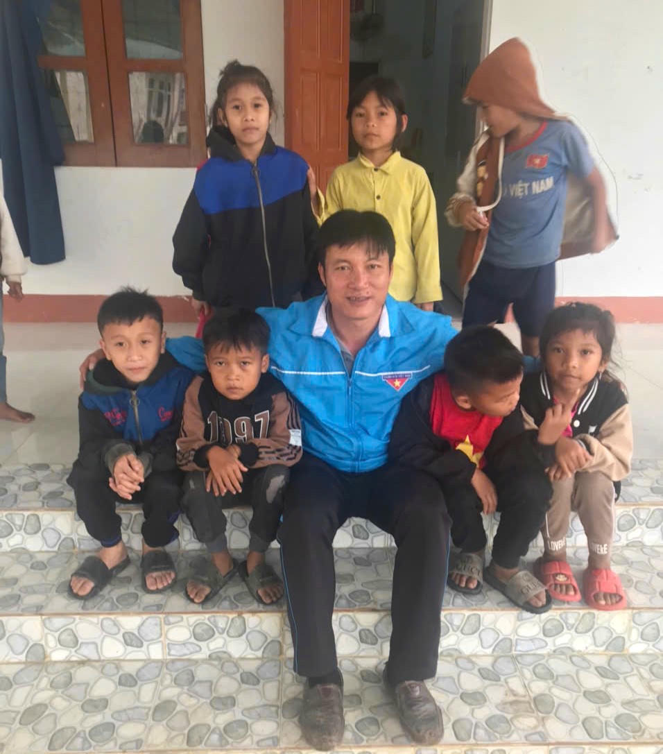 Thầy Hoàng Ngọc Lâm và các em học sinh tại điểm trường Bản Kè.