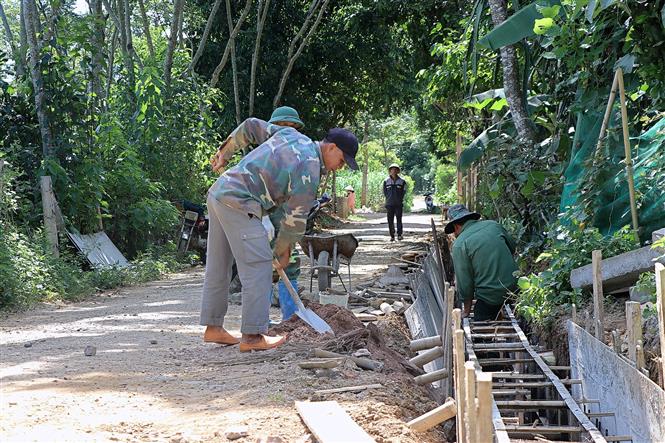 Thực hiện chương trình cứng hóa, cống thoát nước tại xã Toàn Sơn, huyện Đà Bắc (Hòa Bình) được triển khai từ Chương trình mục tiêu Quốc gia phát triển kinh tế - xã hội đồng bào thiểu số và miền núi. Ảnh: Thanh Hải - TTXVN