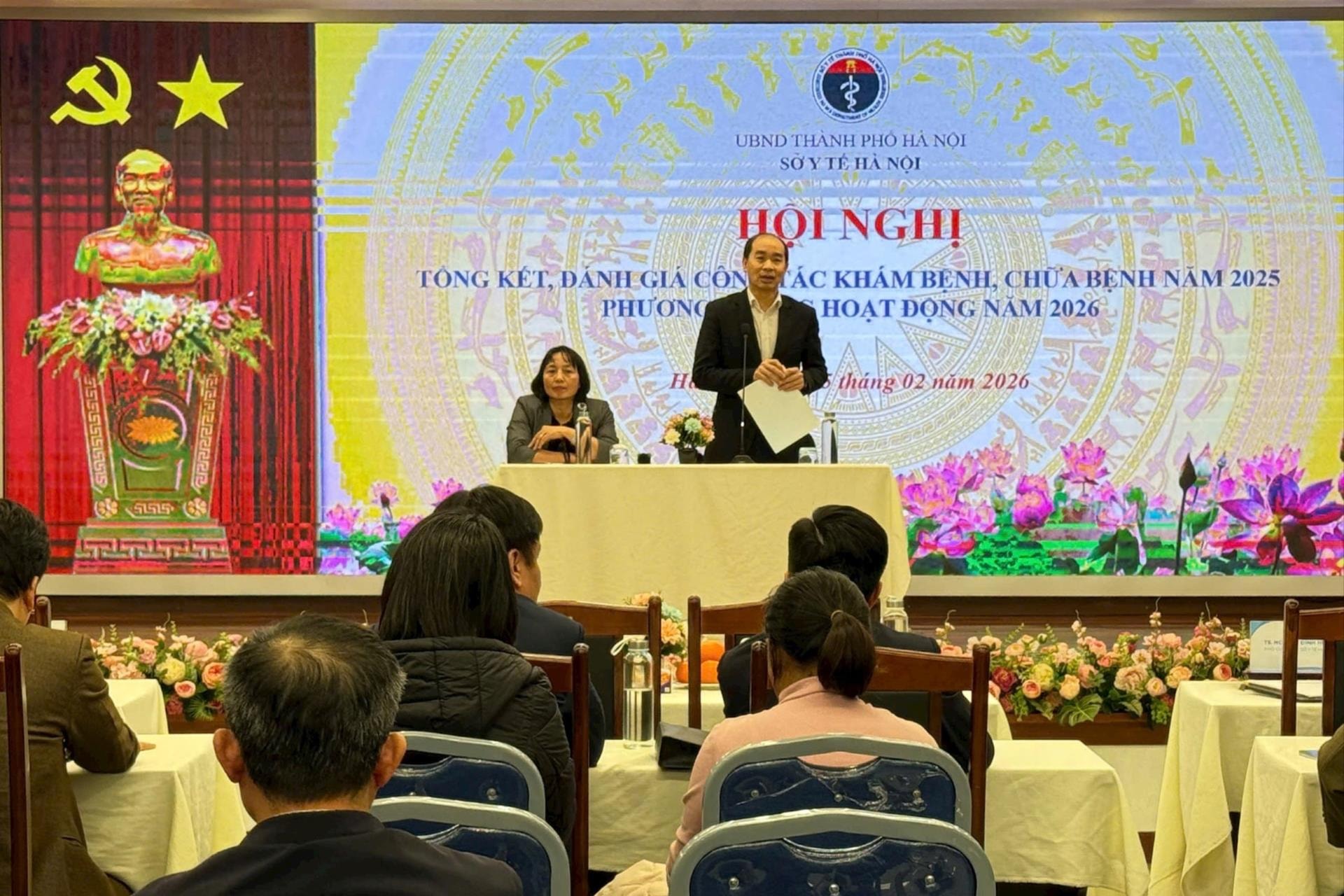 Phó Giám đốc Sở Y tế Hà Nội Nguyễn Đình Hưng phát biểu tại Hội nghị Tổng kết, đánh giá công tác khám bệnh, chữa bệnh năm 2025, phương hướng hoạt động năm 2026. Ảnh: Thắng Đạt
