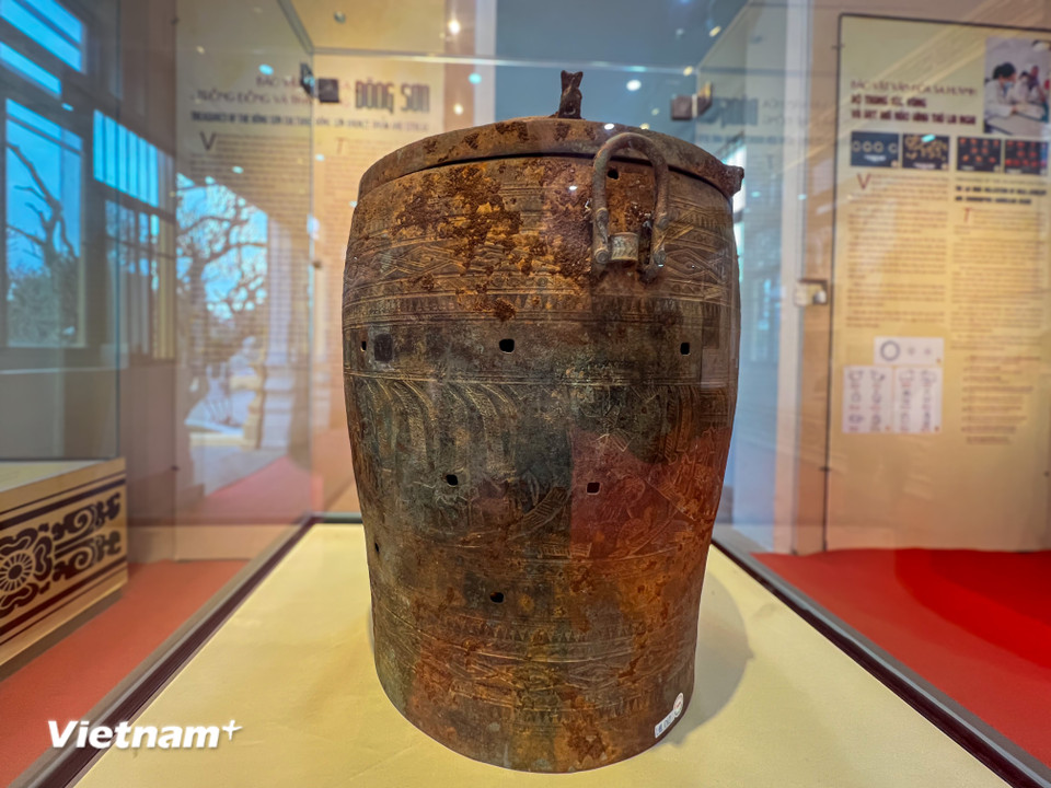 Thạp đồng Đông Sơn từ sưu tập tư nhân Lương Hoàng Long, mở rộng câu chuyện di sản về sự giao thoa văn hóa giữa các vùng miền. (Ảnh: Thanh Phong/Vietnam+)