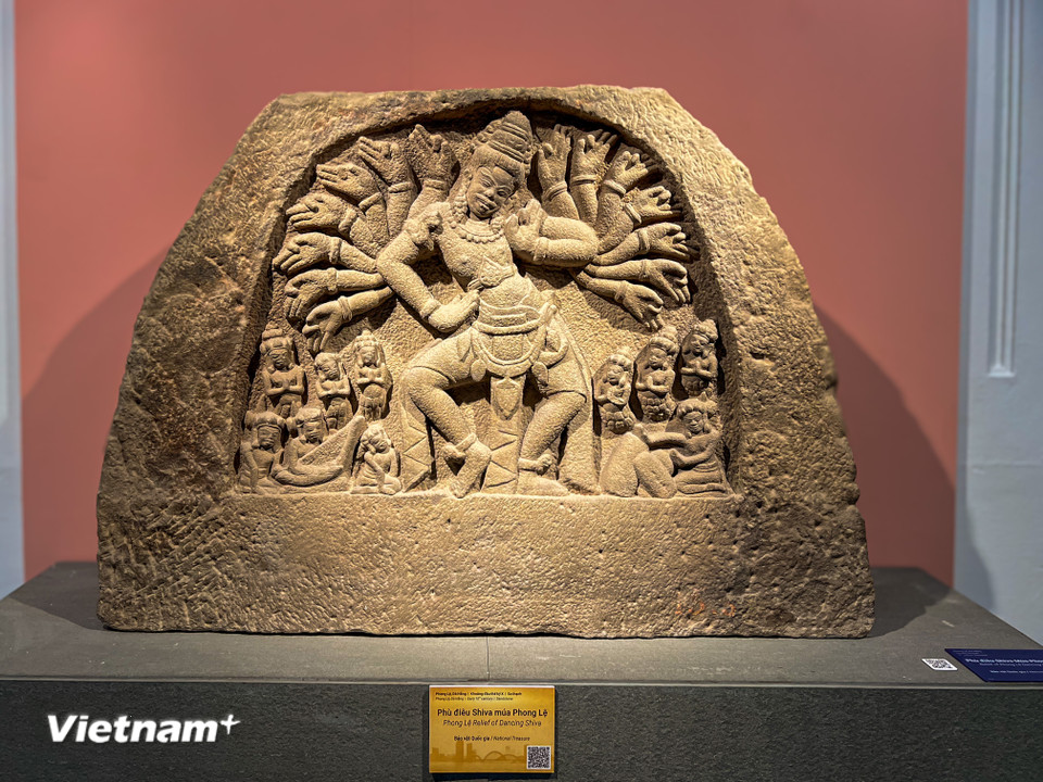 Phù điêu Shiva múa Phong Lệ với nhiều cánh tay xòe rộng, tượng trưng cho năng lượng sáng tạo và hủy diệt vô tận của vị thần tối cao. (Ảnh: Thanh Phong/Vietnam+)