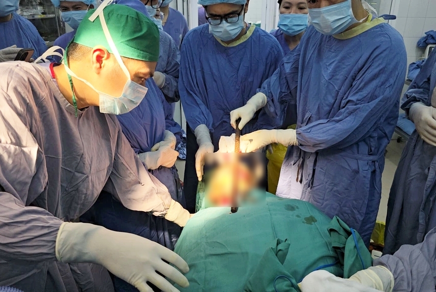 PGS.TS Nguyễn Hồng Hà cho biết khi rút thanh sắt, các bác sĩ phải cẩn thận từng mi-li-met, sau khi kiểm soát hoàn toàn huyết động của người bệnh. Chỉ một sai lệch nhỏ cũng có thể gây vỡ mạch máu lớn hoặc tổn thương thần kinh mặt của người bệnh.