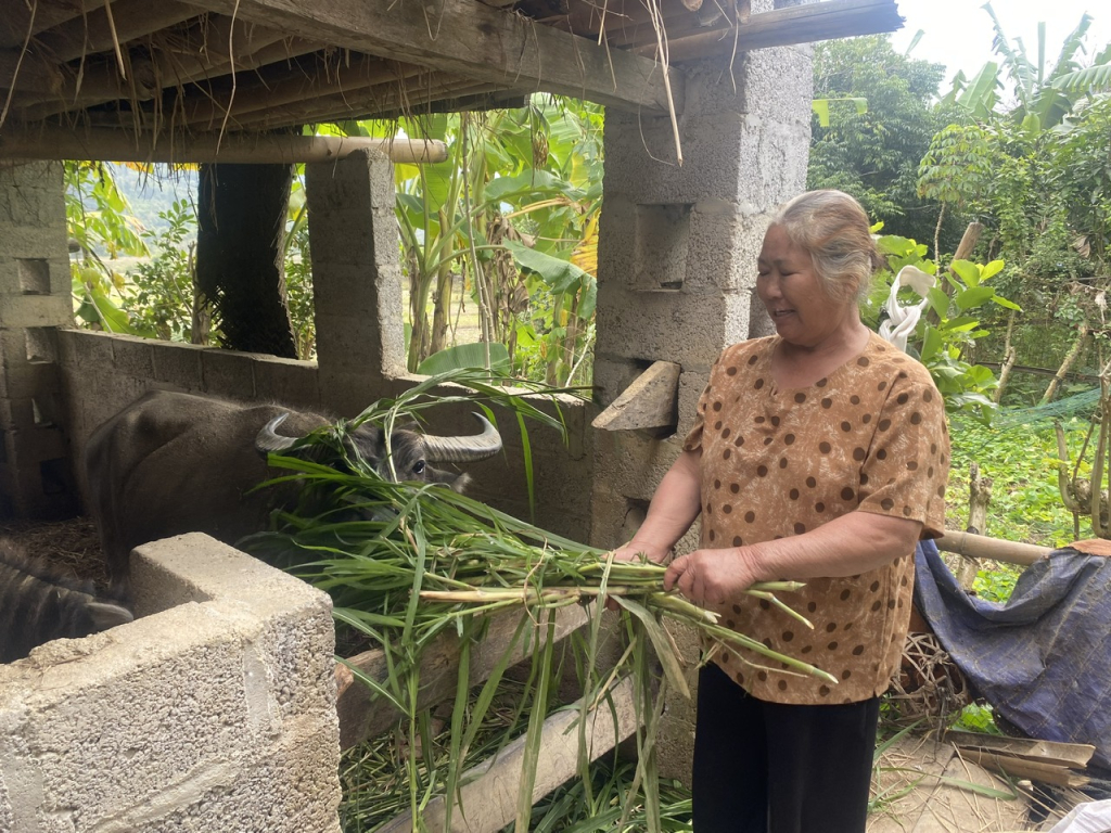Bước ngoặt đến với bà Yến khi gia đình được thụ hưởng Chương trình Mục tiêu quốc gia giảm nghèo, được hỗ trợ con giống để phát triển chăn nuôi, mở ra hướng đi mới trong sản xuất, phù hợp với điều kiện thực tế của gia đình. Từ nguồn hỗ trợ đó, bà Yến mạnh dạn đầu tư nuôi lợn sinh sản và trâu, bò vỗ béo. Dù sức khỏe không cho phép làm việc nặng, bà vẫn kiên trì học hỏi kinh nghiệm, chăm chút từng con vật nuôi, chủ động phòng, chống dịch bệnh, tận dụng tối đa nguồn thức ăn sẵn có tại địa phương để giảm chi phí. Nhờ sự cần cù, chịu khó và cách làm phù hợp, đàn vật nuôi phát triển ổn định, mang lại nguồn thu nhập đều đặn trên 60 triệu đồng sau khi trừ các chi phí từ xuất bán lợn thịt và trâu vỗ béo.