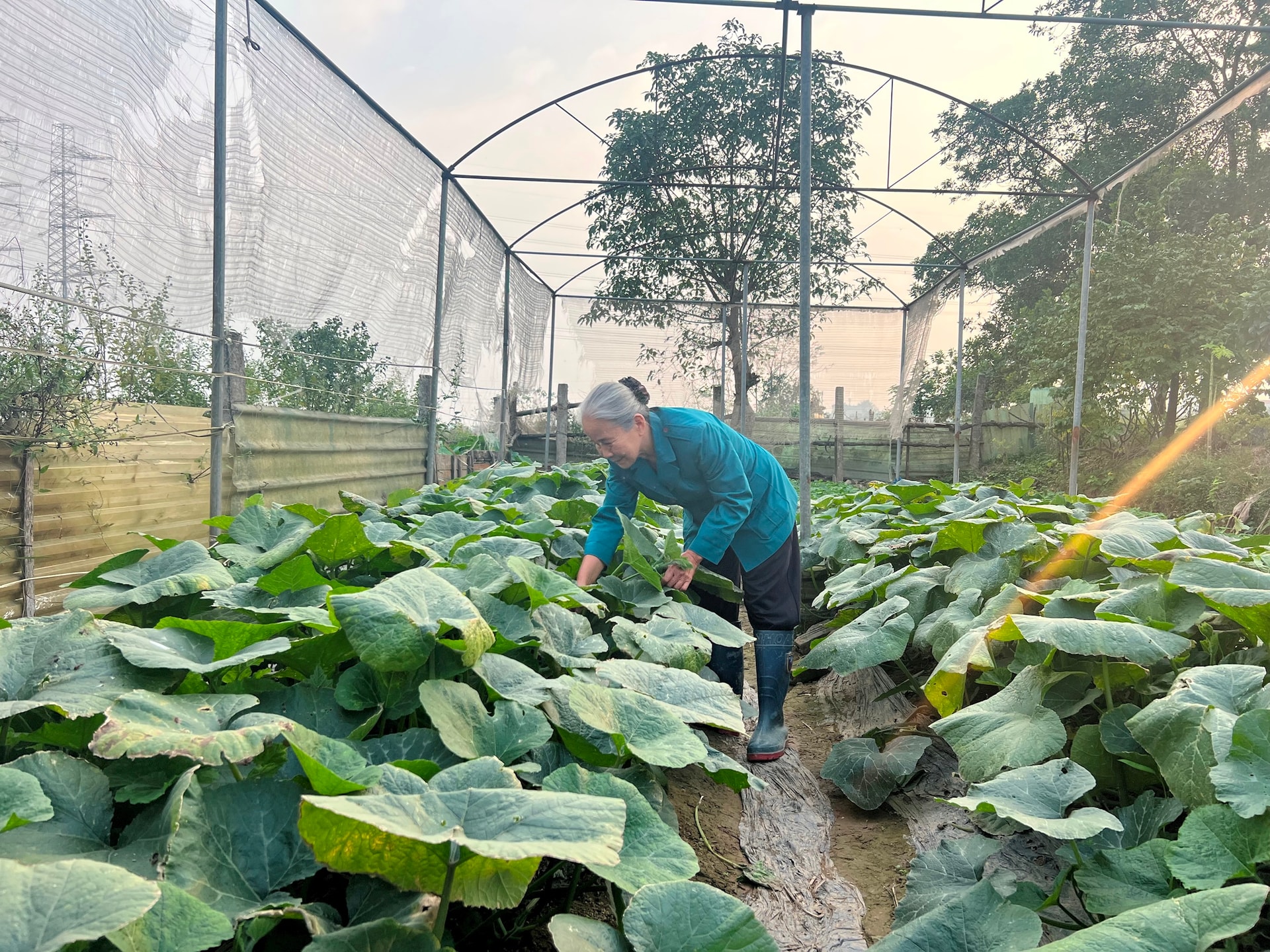 Bà Nhạn trồng rau nhằm cải thiện cuộc sống gia đình. Ảnh: TH