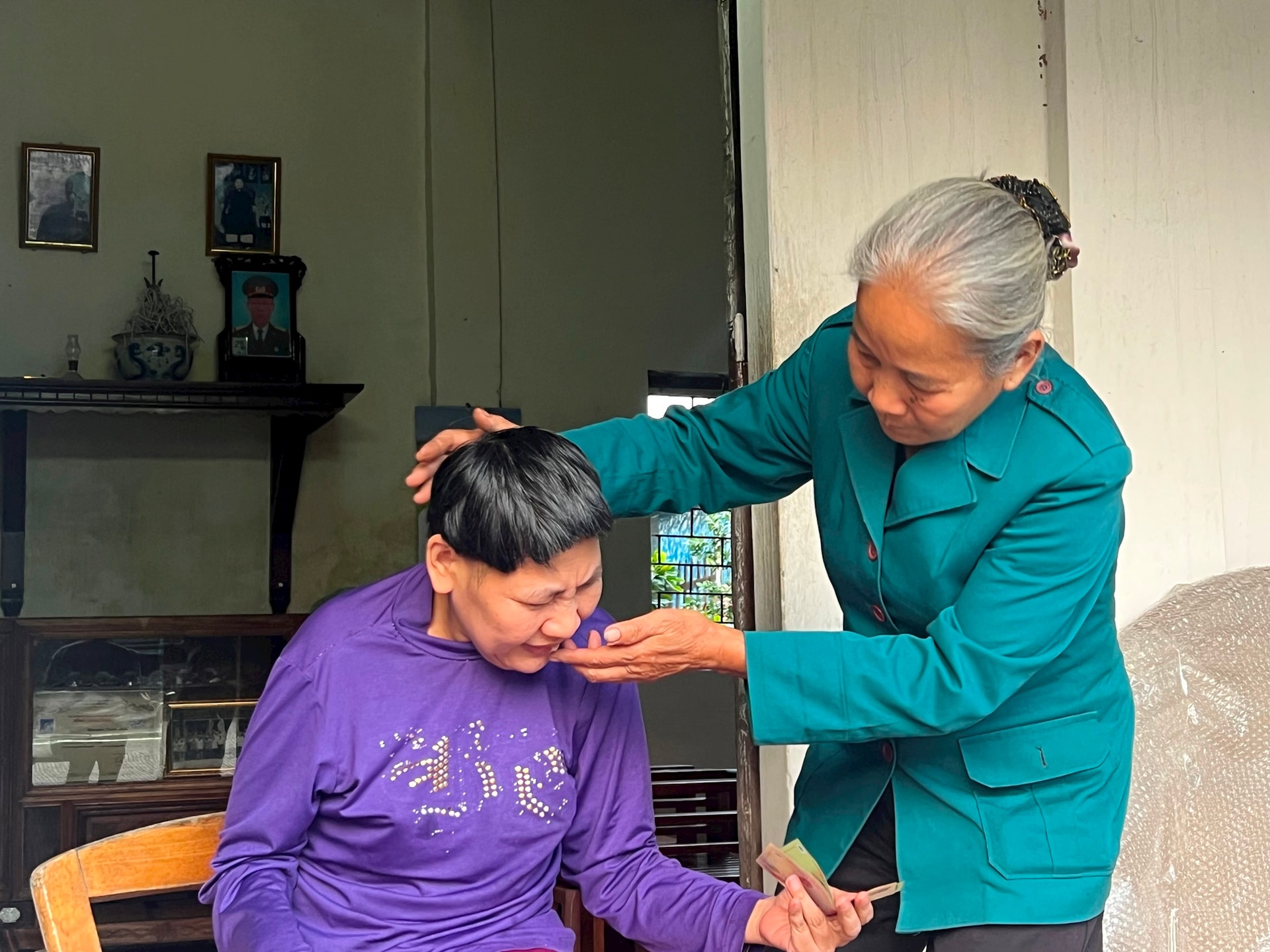 Trong câu chuyện với chúng tôi, bà Nhạn chia sẻ: “Vợ chồng tôi sinh được ba người con, một gái, hai trai. Niềm vui, hạnh phúc đón cô con gái đầu lòng vào năm 1979 chẳng tày gang khi vợ chồng tôi phát hiện cháu bị bệnh não và tật nguyền bẩm sinh. Suốt 47 năm qua, con gái tôi không thể đi lại, không thể tự chăm sóc bản thân, điều này đồng nghĩa với việc mọi sinh hoạt hằng ngày đều phụ thuộc hoàn toàn vào cha mẹ”.