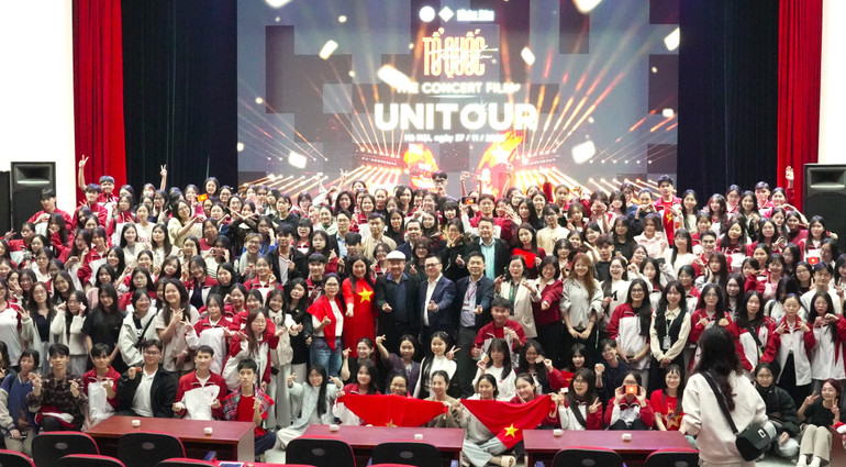 Tối 27/11, Hội trường Nhà Văn hóa-Trường đại học Văn hóa Hà Nội đã trở thành không gian đặc biệt, nơi hàng trăm sinh viên cùng nhau sống trong nhịp đập chung của tình yêu nước. Buổi chiếu “Tổ quốc trong tim: The Concert Film”, điểm dừng chân thứ 2 của hành trình Unitour, không chỉ mang đến một trải nghiệm nghệ thuật giàu cảm xúc, mà còn khắc sâu niềm tự hào và trách nhiệm với Tổ quốc trong mỗi trái tim trẻ.