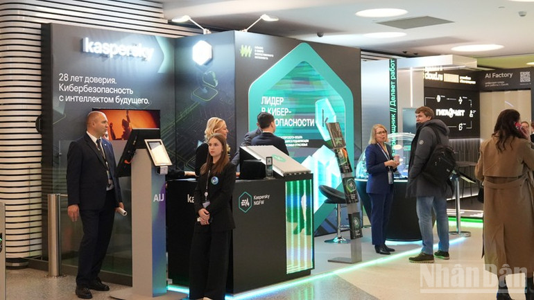 Giá trưng bày sản phẩm ứng dụng AI của Hãng phần mềm bảo mật Kaspersky (Nga) tại hội nghị.