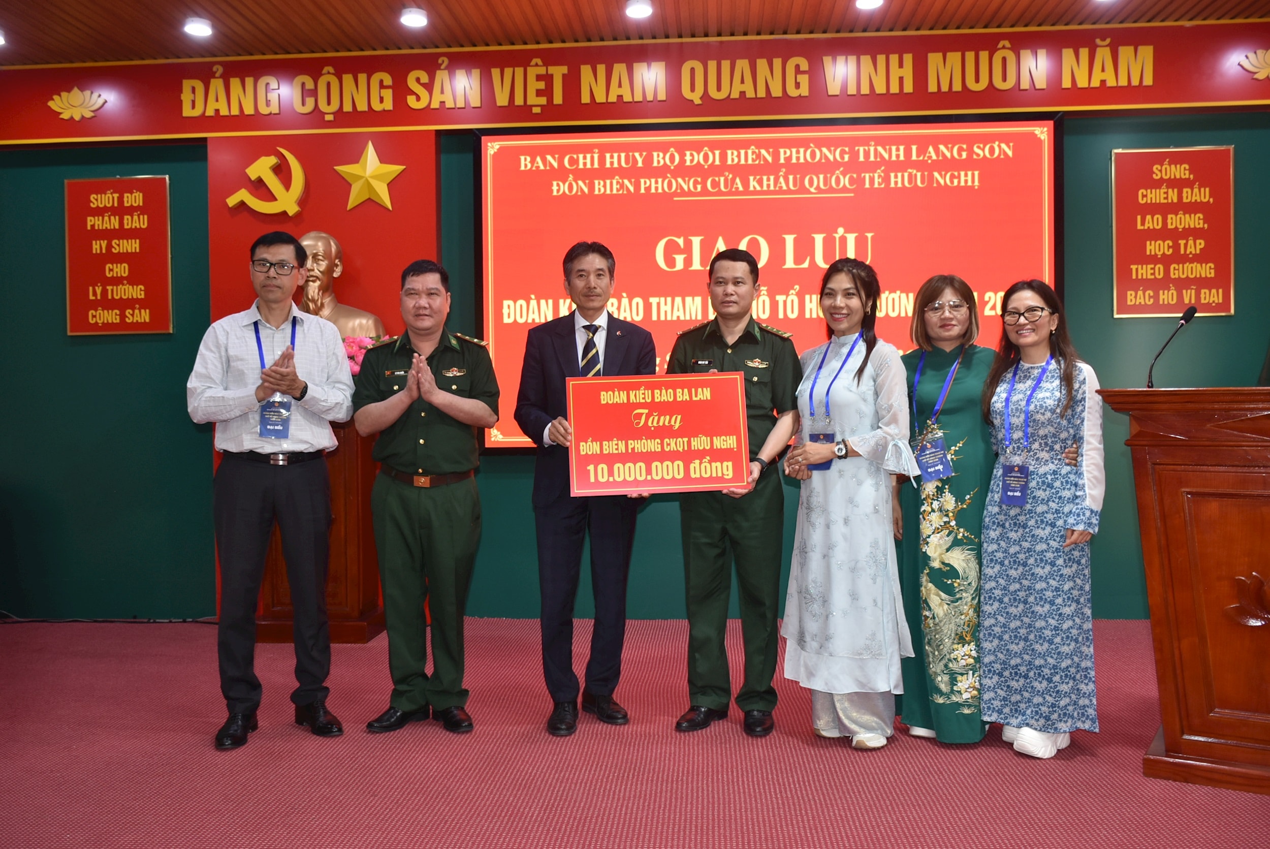Đoàn kiều bào tặng quà cán bộ, chiến sĩ Đồn biên phòng cửa khẩu quốc tế Hữu Nghị. Ảnh: Ủy ban NNVNVNONN