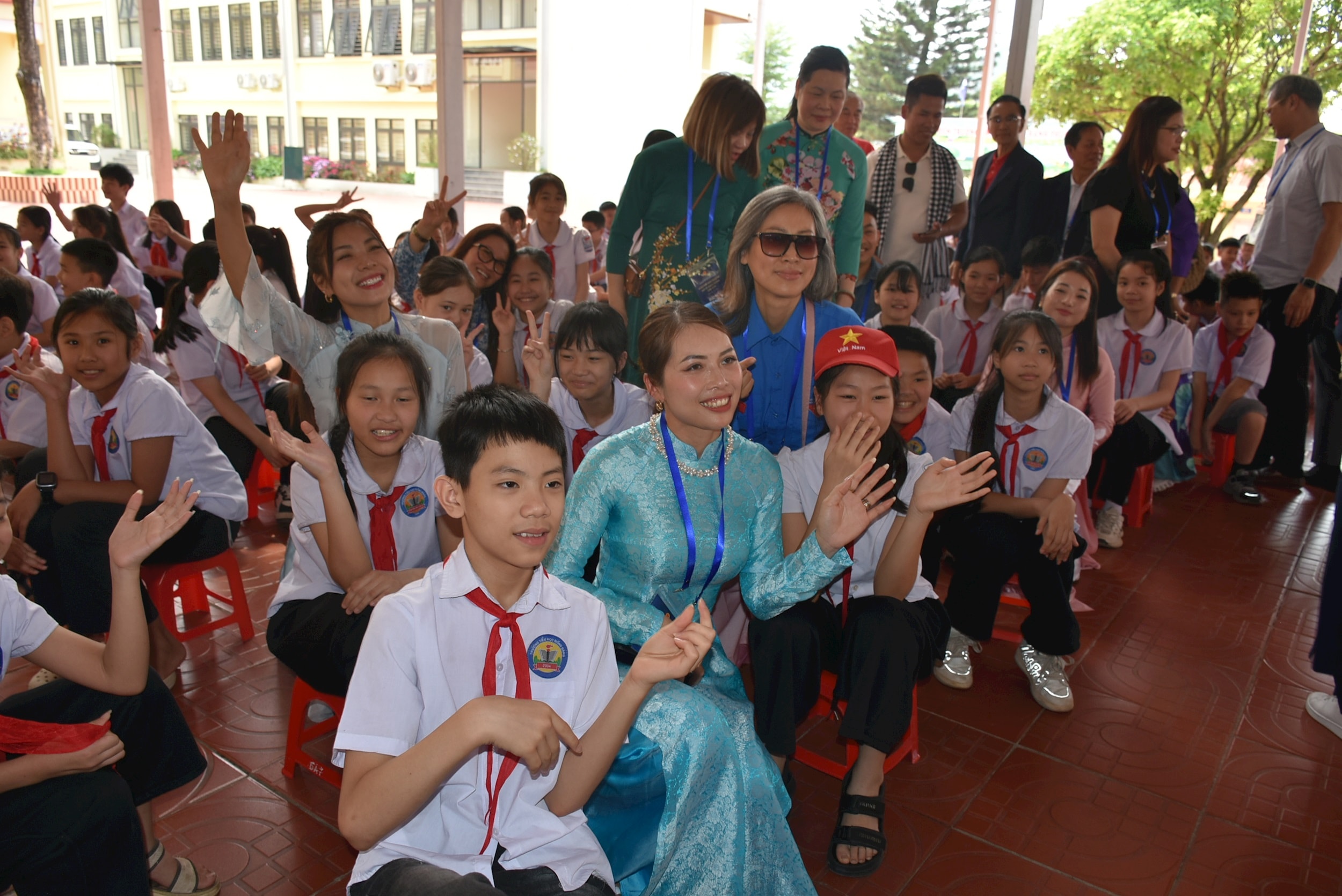 Đoàn kiều bào giao lưu với các em học sinh Trường Tiểu học Đồng Đăng. Ảnh: Ủy ban NNVNVNONN