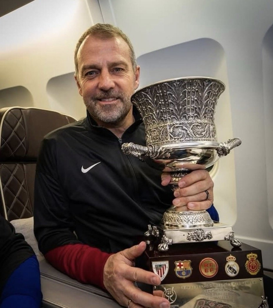 Trước khi đấu Real Madrid ở chung kết Siêu cúp Tây Ban Nha, Hansi Flick lập thành tích toàn thắng 7 trận chung kết ông cầm quân trước đó, bao gồm 5 với Bayern Munich, trong đó gồm cả Champions League và 2 với Barca (Cúp Nhà vua, Siêu cúp Tây Ban Nha mùa trước).
