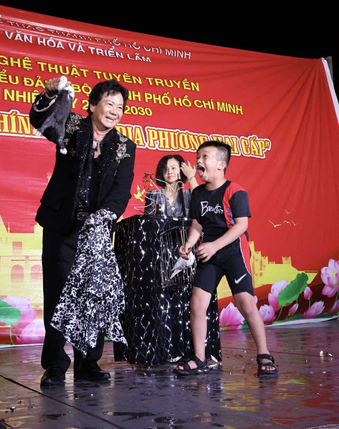 Nghệ sĩ ảo thuật Trần Bình thu hút khán giả trẻ trong chương trình nghệ thuật chào mừng Đại hội Đảng bộ TP HCM lần thứ I