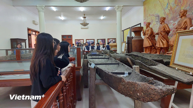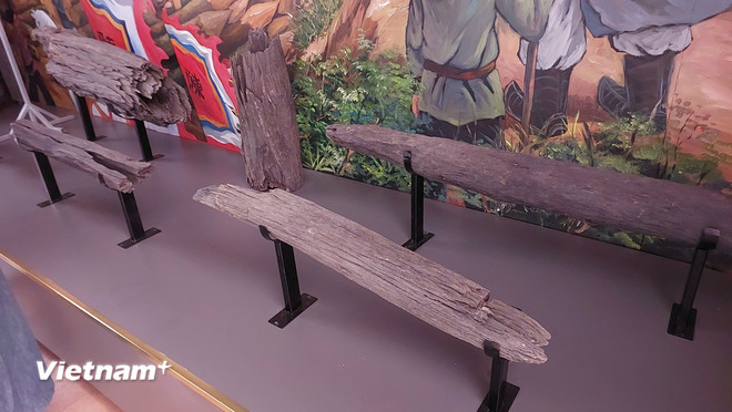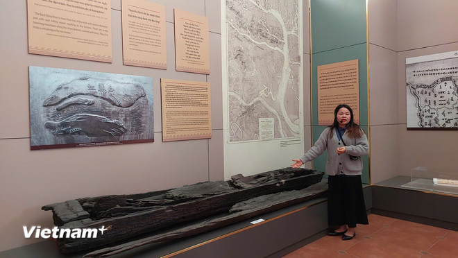 “Đây là một trong số ít địa điểm ở Việt Nam vừa trưng bày vừa bảo quản cọc gỗ ngay tại chỗ. Các cọc gỗ nguyên gốc, có niên đại thế kỷ XIII, được bảo tồn bằng phương pháp ngâm nước tuần hoàn khép kín, xử lý bằng tia UV và hóa chất chuyên dụng để tăng độ bền, hạn chế vi khuẩn, nấm mốc gây hại,” thuyết minh viên Nguyễn Thị Phương cho biết.