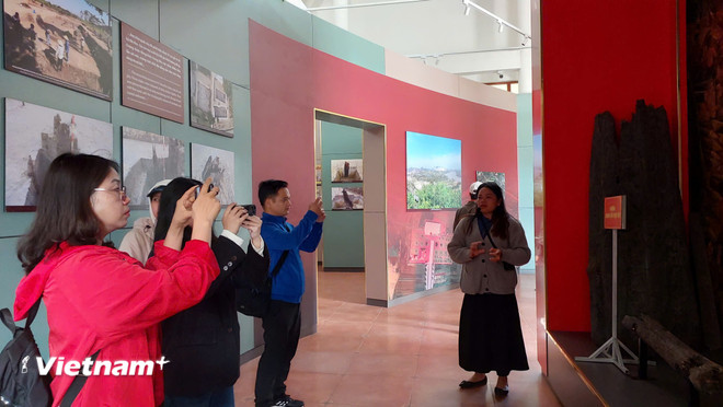 Khách tham quan Khu di tích bãi cọc Cao Quỳ. (Ảnh: Minh Thu/Vietnam+)
