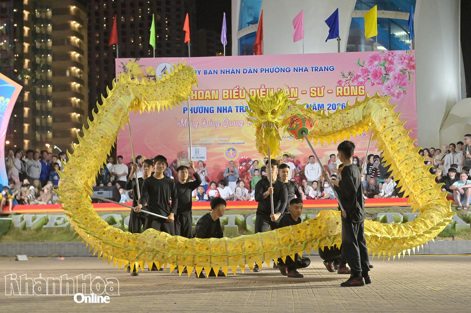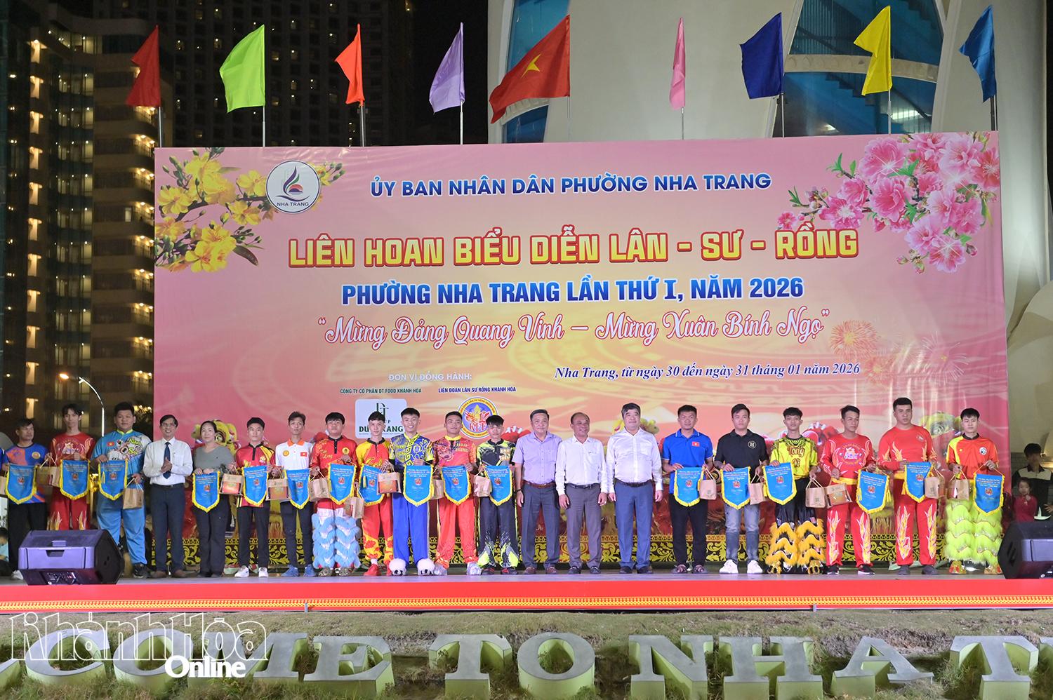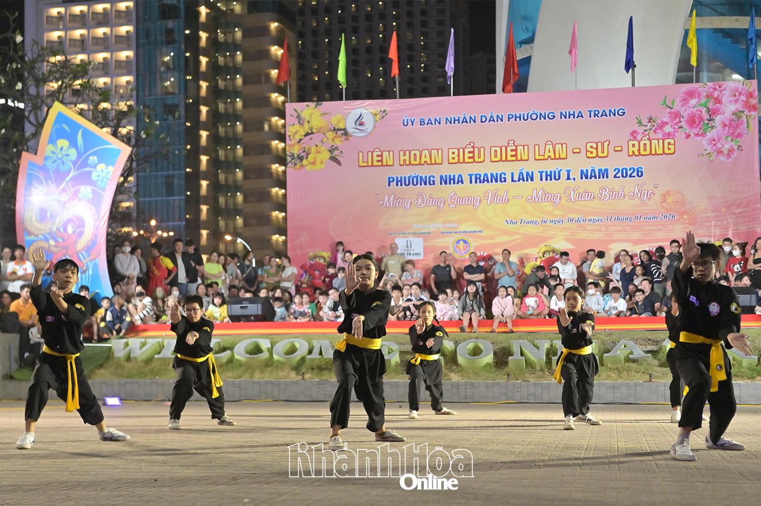 Tối 30-1, tại Quảng trường 2 tháng 4 (phường Nha Trang), UBND phường Nha Trang tổ chức Liên hoan Lân - sư - rồng “Mừng Đảng, mừng xuân Bính Ngọ” lần thứ nhất năm 2026, thu hút đông đảo người dân, du khách trong và ngoài nước đến xem, cổ vũ. Đây là một trong những sự kiện nằm trong chuỗi hoạt động văn hóa, văn nghệ mừng Đảng, mừng xuân Bính Ngọ trên địa bàn phường.