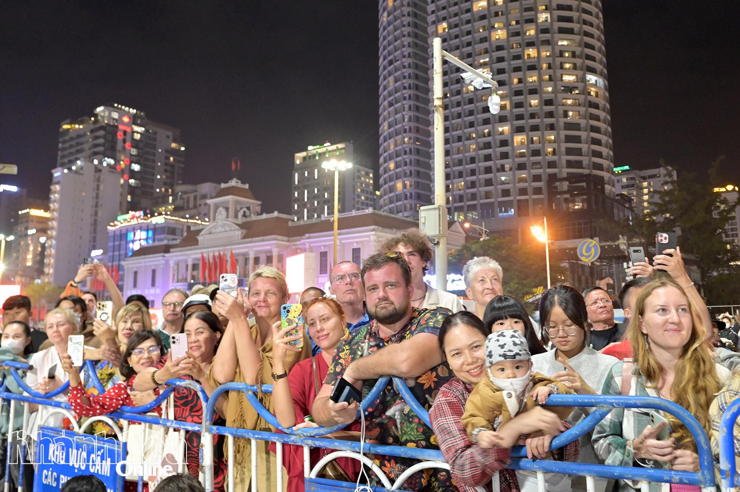Đông đảo người dân, du khách trong và ngoài nước thích thú xem các màn biểu diễn lân - sư - rồng tại liên hoan.