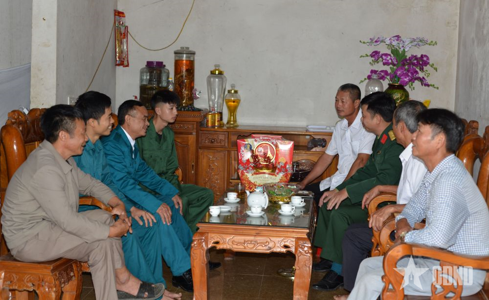 Cấp ủy, chính quyền và các ban ngành, đoàn thể xã Hồng Lộc thăm hỏi, chúc mừng thanh niên Đào Văn Diệu, sinh năm 2006, ở thôn Tân Thành, xã Hồng Lộc khi được kết nạp vào đảng trước ngày nhập ngũ.