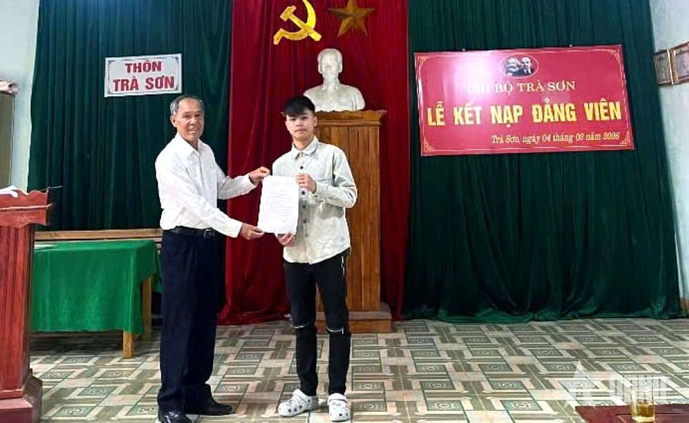 Chi bộ thôn Sơn Trà, xã Hương Sơn trao quyết định kết nạp cho thanh niên Phan Văn Duẩn trước ngày nhập ngũ.