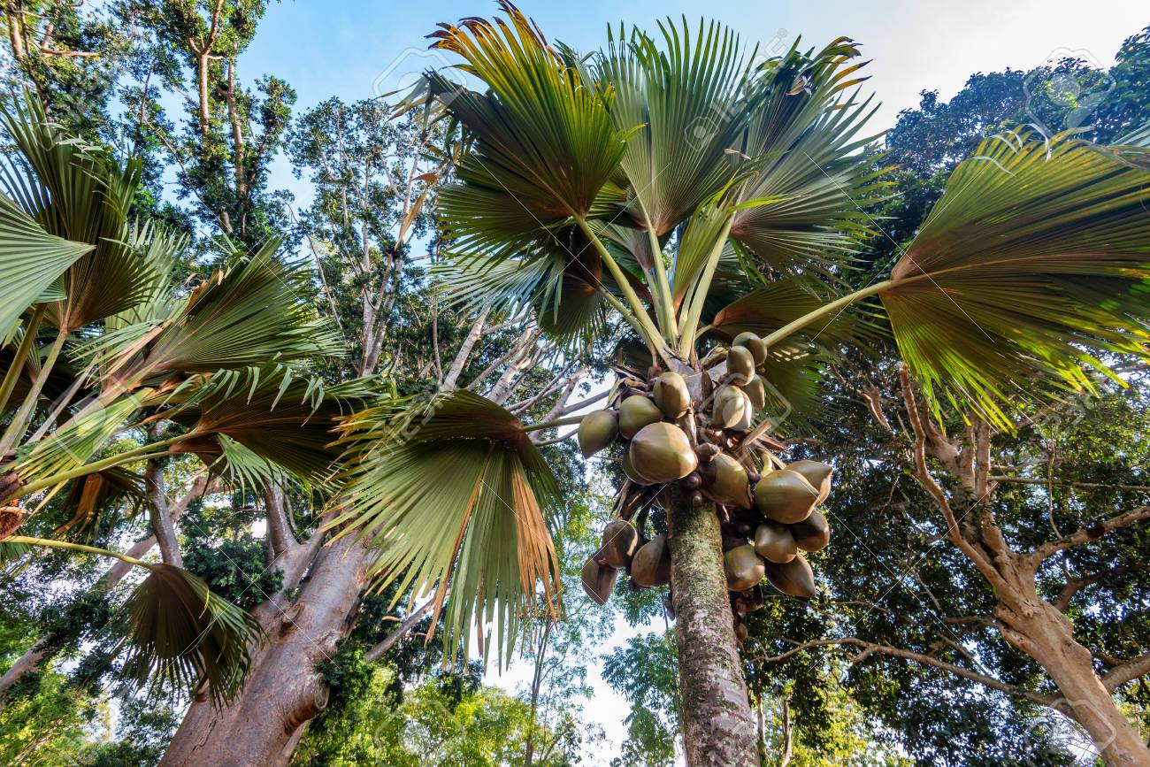 Cây dừa biển coco de mer hay còn gọi là dừa đôi, là một loại cọ mọc trên các đảo Praslin và Curieuse thuộc quần đảo Seychelles. Loài cây này có tuổi thọ tới 200 năm. Ảnh: Pinterest