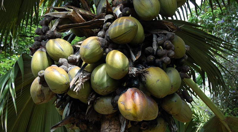 Quả dừa Coco de mer khi đủ độ chín (thường mất từ 6-7 năm) có đường kính 40-50 cm, nặng 15-41kg. Ảnh: Eurasiareview