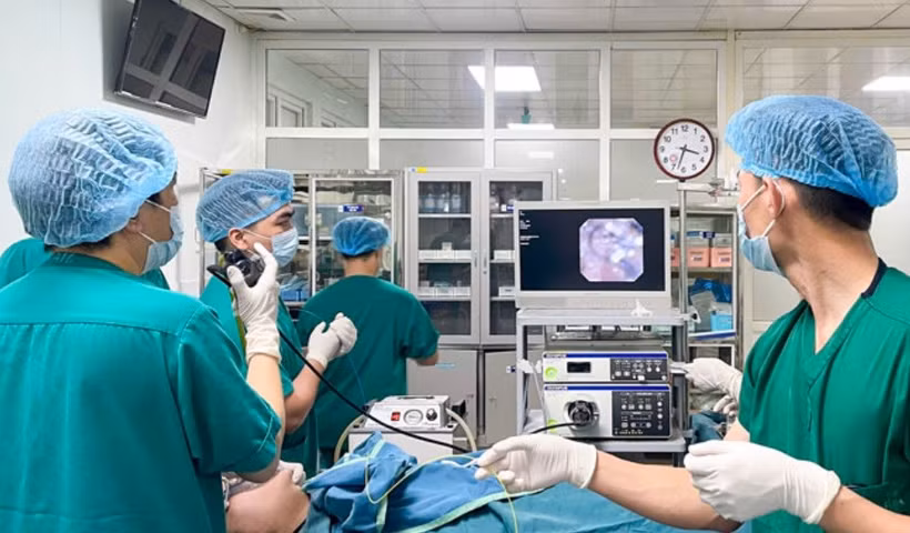 Các bác sĩ áp dụng kỹ thuật nội soi ống cứng kết hợp laser đối với trường hợp dị vật đường thở khó.