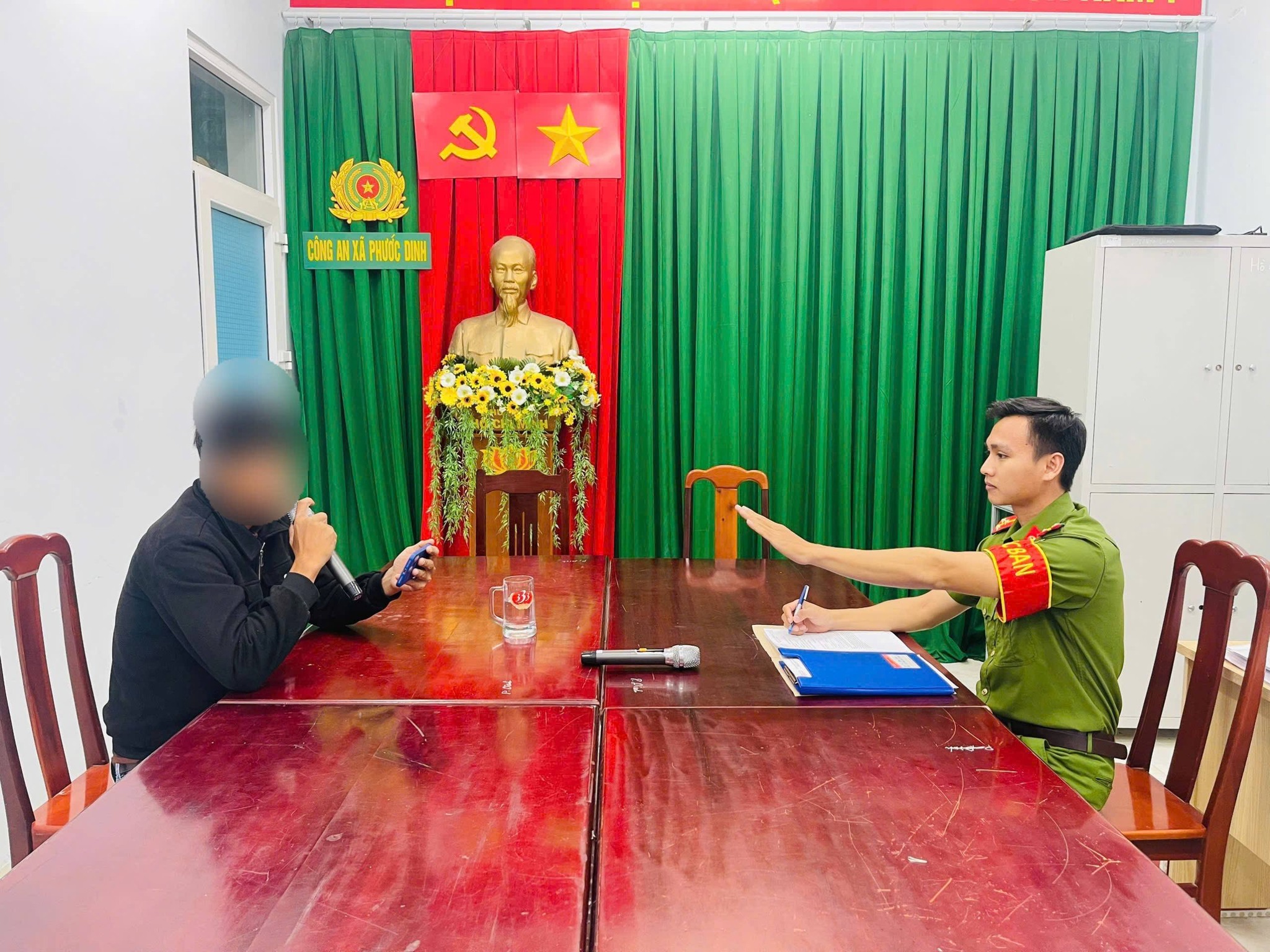 Ngay sau khi tiếp nhận tin báo, lực lượng Công an xã Phước Dinh nhanh chóng có mặt tại hiện trường, mời ông K. về trụ sở để làm việc. Tại đây, nhằm giúp người vi phạm nhận thức rõ mức độ ồn ào do hành vi của mình gây ra, công an xã đã yêu cầu ông K. hát lại bài karaoke ngay tại trụ sở. Qua đó, ông K. trực tiếp cảm nhận được mức độ to, ảnh hưởng của tiếng hát khi phát ra trong không gian xung quanh.