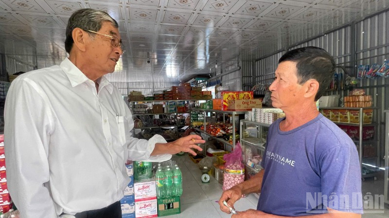 Vượt quãng đường lắt léo men theo kênh, tăng bo bằng xe máy leo qua những cây cầu hẹp vanh, bắc cao vượt kênh rạch, chúng tôi vào ấp Thịnh Tây A, xã Đông Hòa (An Giang). Biết ông đến, người dân cứ từ đâu kéo tới. Những gương mặt sạm đen vì nắng gió cười như tỏa nắng.
