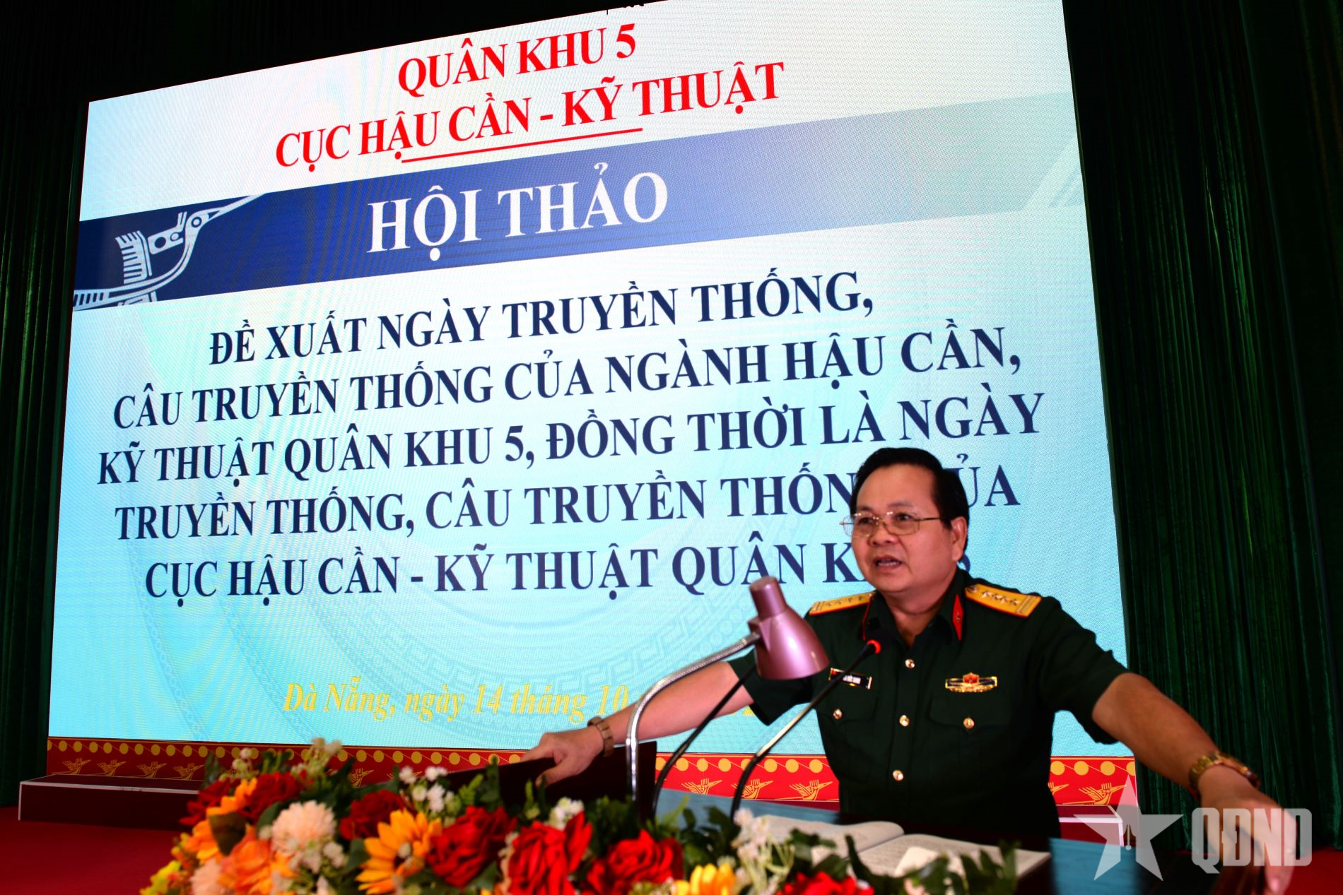 Phát biểu khai mạc hội thảo, Đại tá Trần Kim Quyền, Chính ủy Cục Hậu cần - Kỹ thuật Quân khu 5 nhấn mạnh: Hội thảo nhằm thảo luận, thống nhất 4 vấn đề liên quan đến truyền thống của ngành hậu cần, kỹ thuật và Cục Hậu cần - Kỹ thuật Quân khu 5, gồm: Nội dung đề cương tuyên truyền, giáo dục về ngành hậu cần, kỹ thuật Quân khu 5; đề xuất ngày truyền thống, câu truyền thống của ngành hậu cần, kỹ thuật, Cục Hậu cần-Kỹ thuật Quân khu 5; báo cáo bài hát truyền thống của Cục Hậu cần - Kỹ thuật; chọn biểu trưng của Cục Hậu cần - Kỹ thuật.