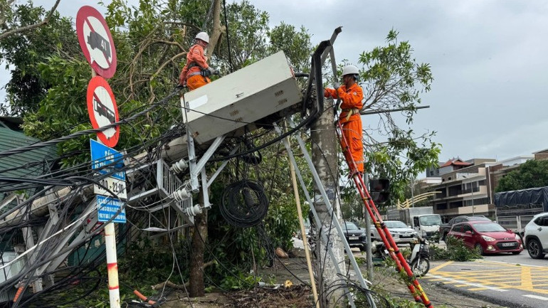 Mặc dù thời tiết mưa lớn sau bão, giao thông chia cắt, nhiều khu vực ngập sâu, nhưng các đội điện lực vẫn nỗ lực làm việc ngày đêm để dựng cột, nối dây, thay thiết bị và đóng điện từng phần, bảo đảm an toàn tuyệt đối cho người dân và hệ thống.