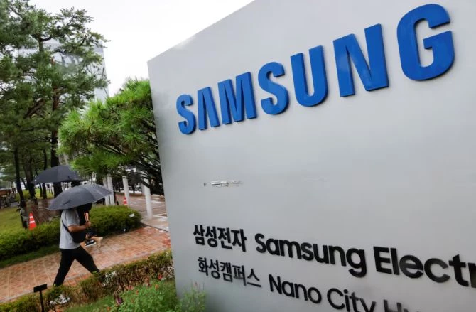 Biển hiệu của Samsung Electronics trước khu phức hợp Samsung Electronics Nano City Hwaseong ở Hwaseong, Hàn Quốc. Ảnh: Reuters.