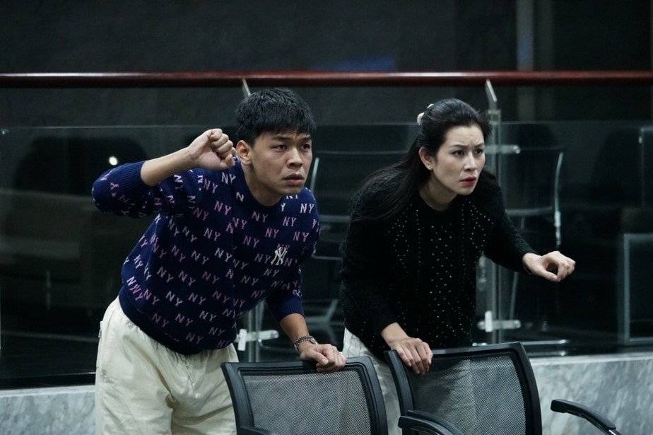 Lâm Thị Mỹ Dạ và Hứa Minh Đạt cùng ekip đang luyện tập cho tiểu phẩm mang tên Việc nhẹ lương cao